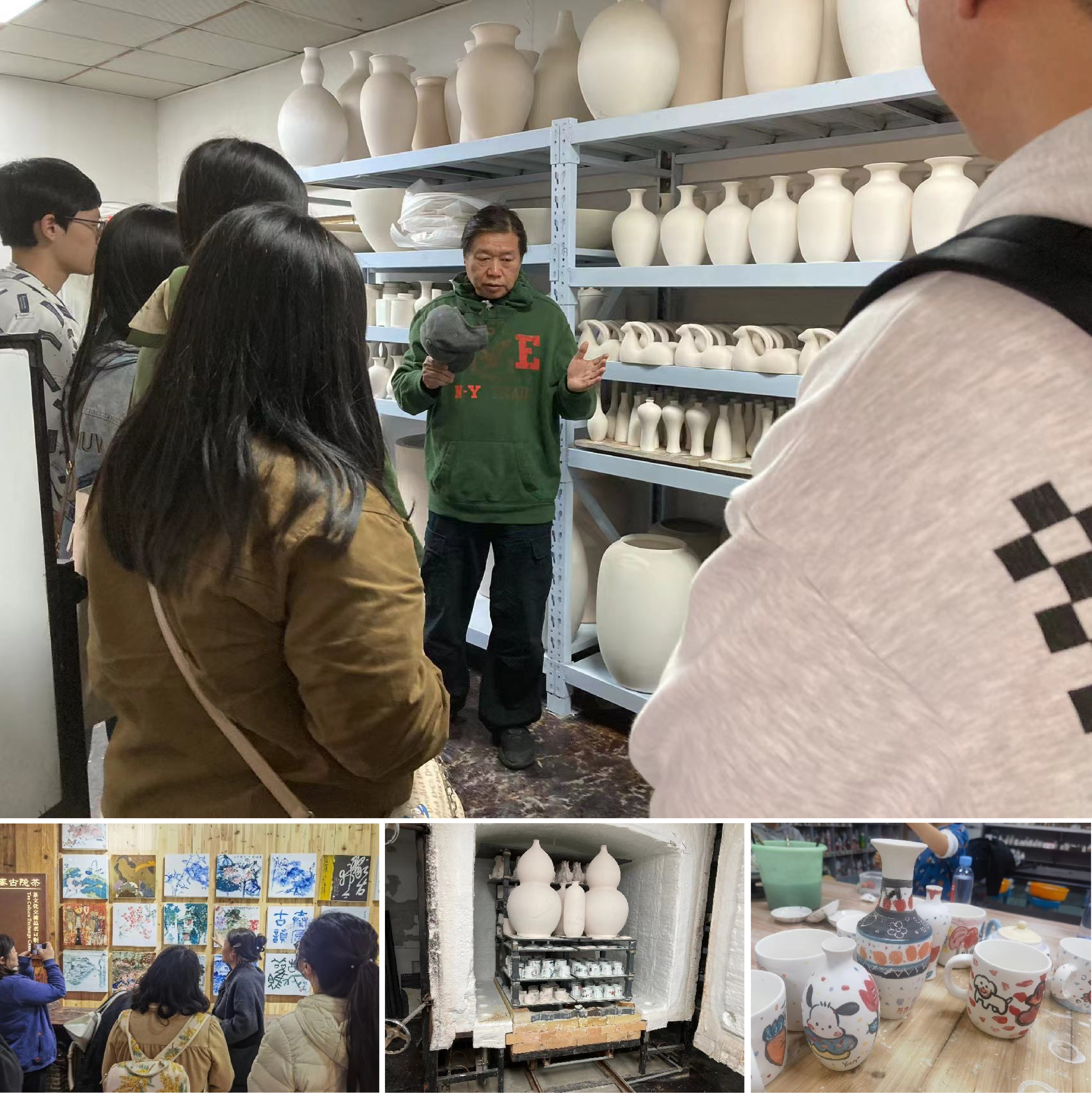 4月6日,402永利集团“申韵东窑——海派瓷艺人才工作室 东瓷文创工作坊”的师生一行来到位于江桥镇的上海秦古美术馆研学。员工们深入园区和工艺现场,了解陶瓷艺术的技艺和制作过程,并向美术馆的陶艺大师、烧制师傅学习陶瓷艺术的创新、发展以及制作流程。陶艺馆的工作人员为员工们介绍了展馆现有作品、近期展项以及陶瓷艺术的创意过程及瓷画烧制的精细要求。驻馆艺术家平龙老师为员工们详细介绍了瓷艺创作中的美学特征和材质要求,重点介绍了海派绘画与陶艺的关联以及未来海派陶艺的发展。