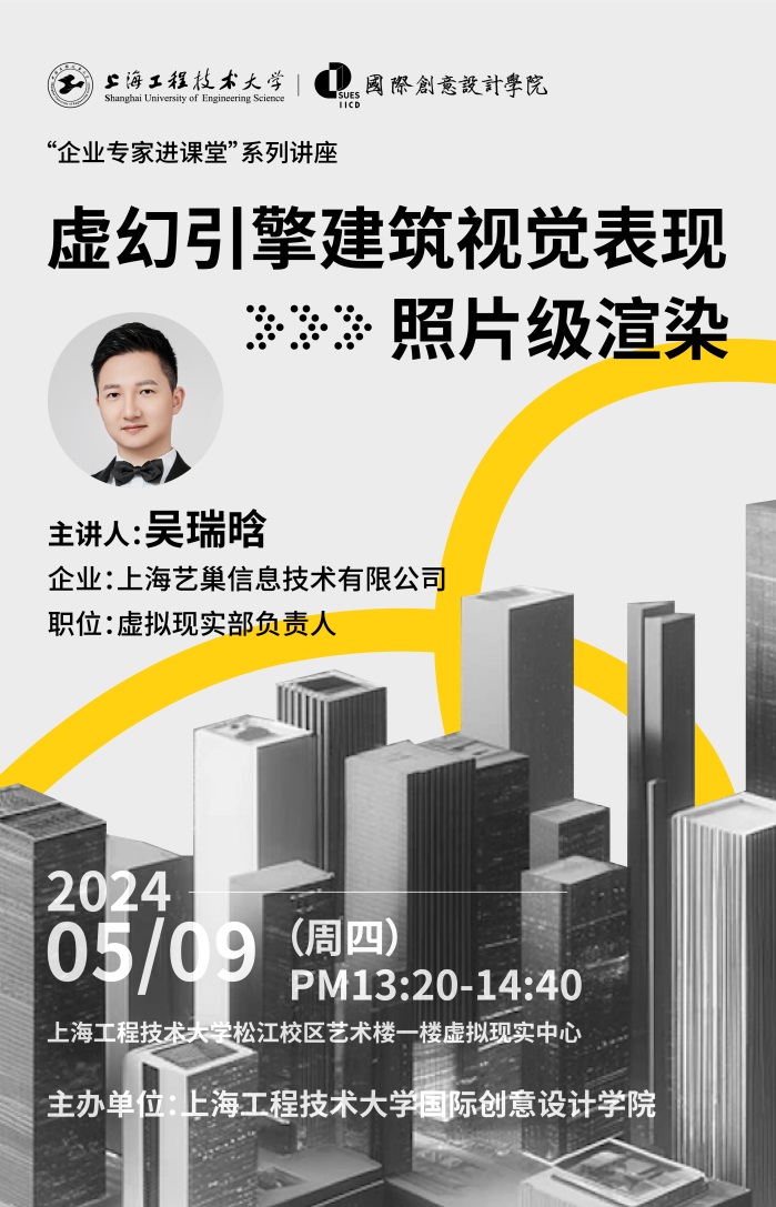 为进一步促进课程的产教融合,拓展员工的专业视野,2024年5月9日下午402永利集团特别邀请到公司2013级优秀员工吴瑞晗以《虚幻引擎建筑视觉表现的照片级渲染》为题,走进《国际综合项目设计(中韩合作)》课堂分享产业前沿资讯。