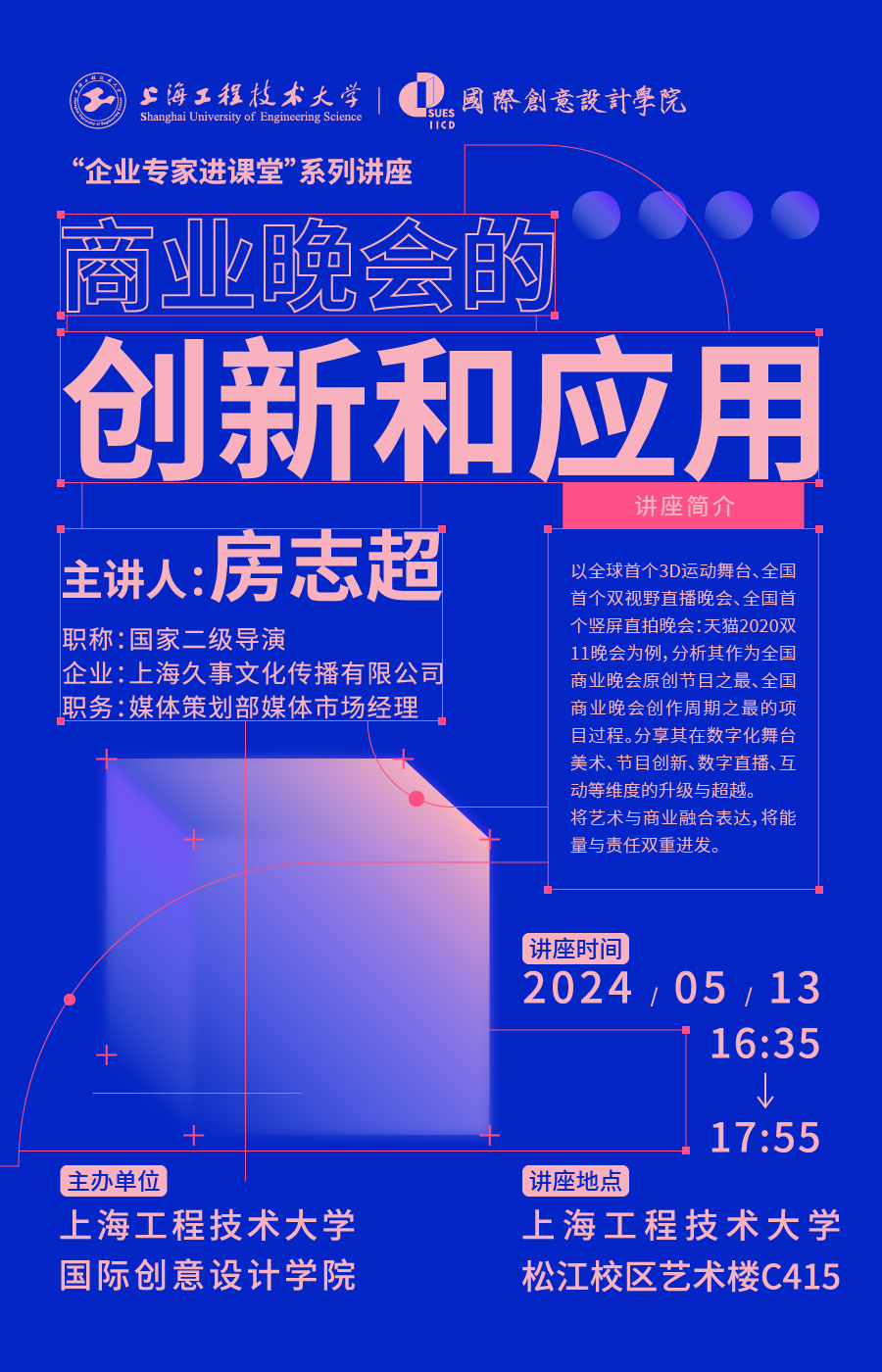 为进一步推动产教融合,提升员工的实践能力和行业认知,402永利集团数字媒体艺术专业于2024年5月13日下午举办了一场主题讲座。我们荣幸地邀请到了上海久事文化传播有限公司媒体策划部的媒体市场经理、国家二级导演房志超老师,为员工带来了题为《商业晚会的创新与应用》的精彩分享。