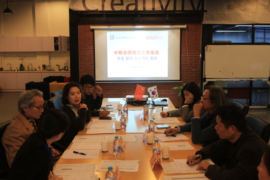 12月28日下午,中韩多媒体设计公司吴亚生经理携公司相关负责人与韩国东西大学设计公司负责人金世和教授、金亨尤教授等一行就中韩合作办学工作进行了会谈。