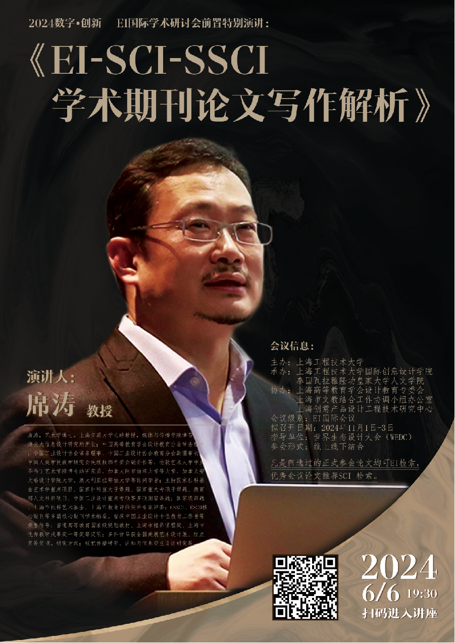 本次会议的正式录用论文提供EI检索,其中的优秀论文推荐SCI检索。欢迎广大在读的国内外博士生和硕士研究生参与投稿,同时也欢迎中外大学的任教教师和各科研机构人员投稿。为了提高投稿论文的质量,减少不必要的修改,规范投稿论文标准,本次会议特邀了上海交通大学长聘教授席涛博士于2024年6月6日晚7:30(中国时间)开展以《EI-SCI-SSCI学术期刊论文写作解析》为题的前置特别演讲。详情见讲座海报。
