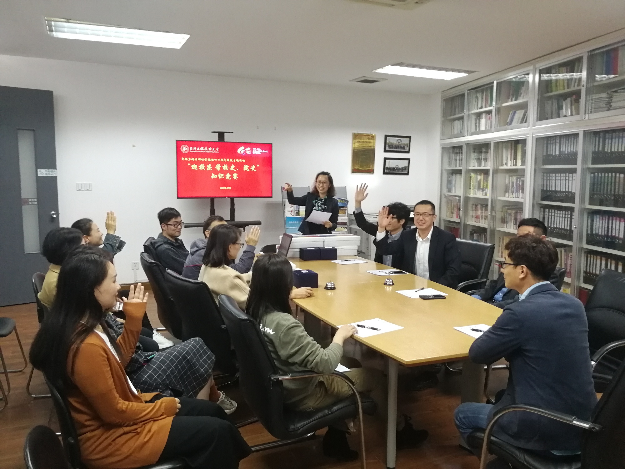 10月26日上午,中韩多媒体设计公司为迎接公司四十周年校庆及校“数字虚拟校史馆”开幕之际,举办“迎校庆——公司史、院史”知识竞赛活动,竞赛分设松江校区、长宁校区两个会场。公司首先组织全体教职工共同参观学习了公司设计制作团队为校史馆倾力打造的展览资料,并通过知识竞赛的形式,加深对工程大建校40年来的办学理念、专业特色、奋斗历程,以及公司成立15年的发展变革、办学成就的了解,共庆程园华诞。活动得到了公司中韩方教职工的积极参与,竞赛现场气氛热烈,经过精彩激烈的角逐,各类奖项都名花有主。