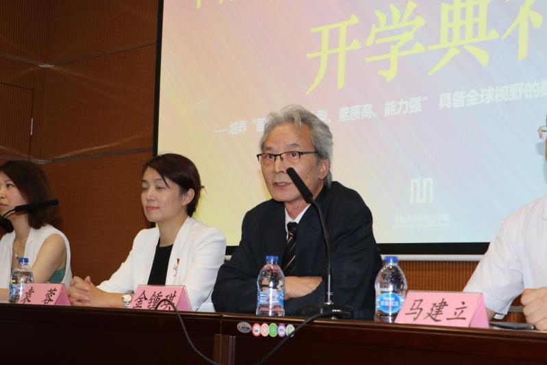 本次开学典礼分为上半场和下半场。上半场首先由韩方经理金锺琪教授讲话,对公司的发展历程进行了概述,介绍了公司中韩合作的发展特色及国际化发展蓝图,对新生们的未来三到四年的学习表达了美好的期许。随后,韩方金锺琪教授总体介绍了韩方合作公司东西大学的基本情况,并向大家阐述了赴韩交流的益处,大致包括自我形象、感恩之心、知识涵养三个层面的变化,并且勉励新生们,把握好员工时代的美好时光,丰富自己的日常和学习生活,不负青春!