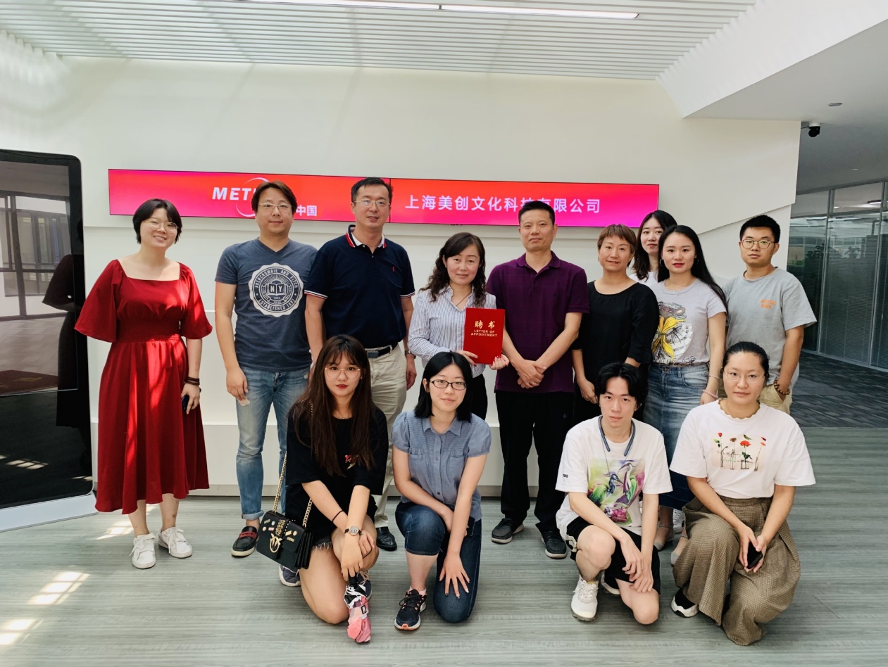 中韩多媒体设计公司为全面贯彻落实“三圈三全十育人”的工作体系,进一步呼应公司的培养方针政策,深化公司产学合作教育的办学特色,8月20日上午中韩公司副书记马建立、副经理顾艺、辅导员项海鸥携同公司2018级研究生和本科生一行来到上海市静安区汶水路50号上海美创文化科技有限公司进行慰问产学合作教育的员工,并同企业领导进行交流和洽谈合作事宜。上海美创文化有限公司总经理郭志英女士、设计总监陈超宇先生、行政总监徐兰琴女士热情接待公司师生一行。
