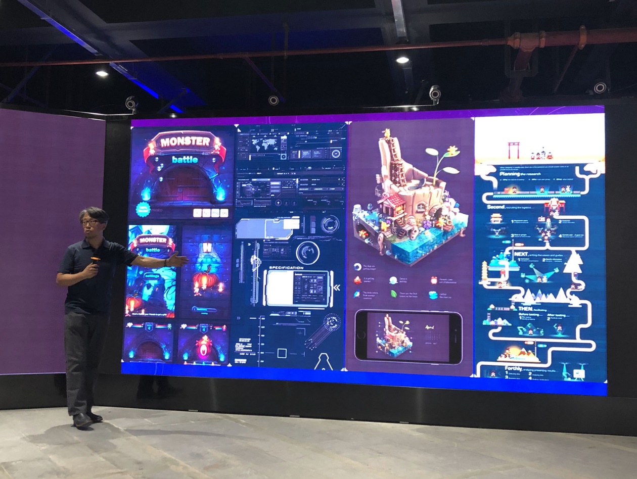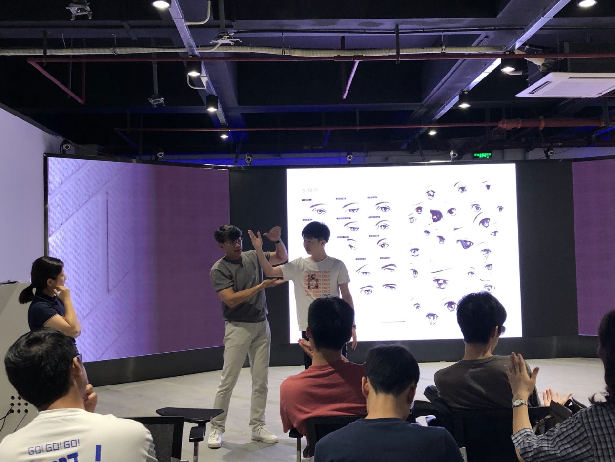 在接下来的四天工作坊活动中,第一天,海外名师墨西哥蒙特雷大学Carlos教授进行前期的课程导入,讲解了人机交互设计的设计流程,并且分组进行课程调研。第二天,韩国公州大学李东烈教授讲解了游戏中角色创作的思路以及对于人物比例的把控分析,游戏设计时候的用户心理学,观看了大量的优秀实例作品。第三天,韩国公州大学景炳杓教授讲解了游戏中的情报设计和UI\UX设计,随后根据分组,让员工构思一个游戏,并且进行游戏场景,角色,故事剧情的设计。