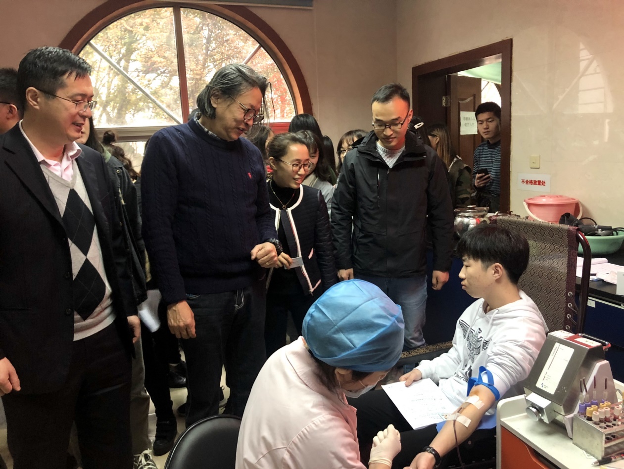 当日下午,同学们纷纷从教室赶往集合点,配合志愿者有序上车赶赴松江血站。从外场排队,体检、抽血同学们一直有说有笑,井然有序。吴经理率先到达松江血站现场,在抽血区,关心同学们的献血前的心理状态,疏解部分同学的紧张气氛,马建立老师、俞兰老师也不停地在给部分紧张的同学加油鼓劲。对输血中同学的身体状况吴经理亲身走到每位献血同学跟前关心问候。