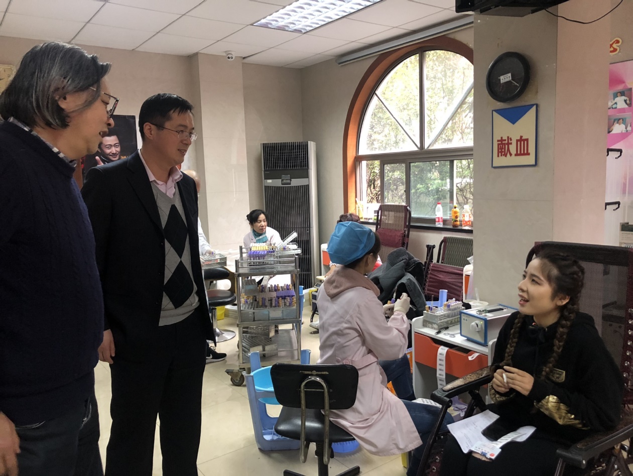 3月28日下午,中韩多媒体设计公司员工于松江区血站进行无偿献血,中韩多媒体设计公司经理吴亚生、公司副书记马建立、公司办公室主任俞兰到场对献血同学进行关切慰问。
