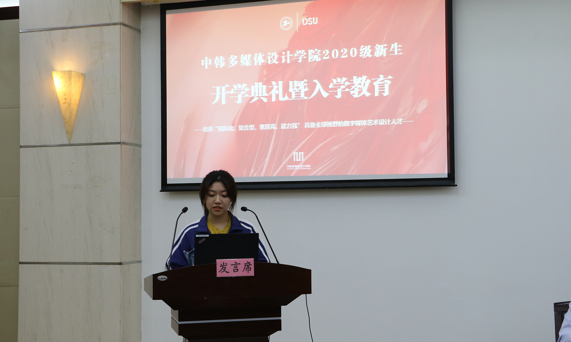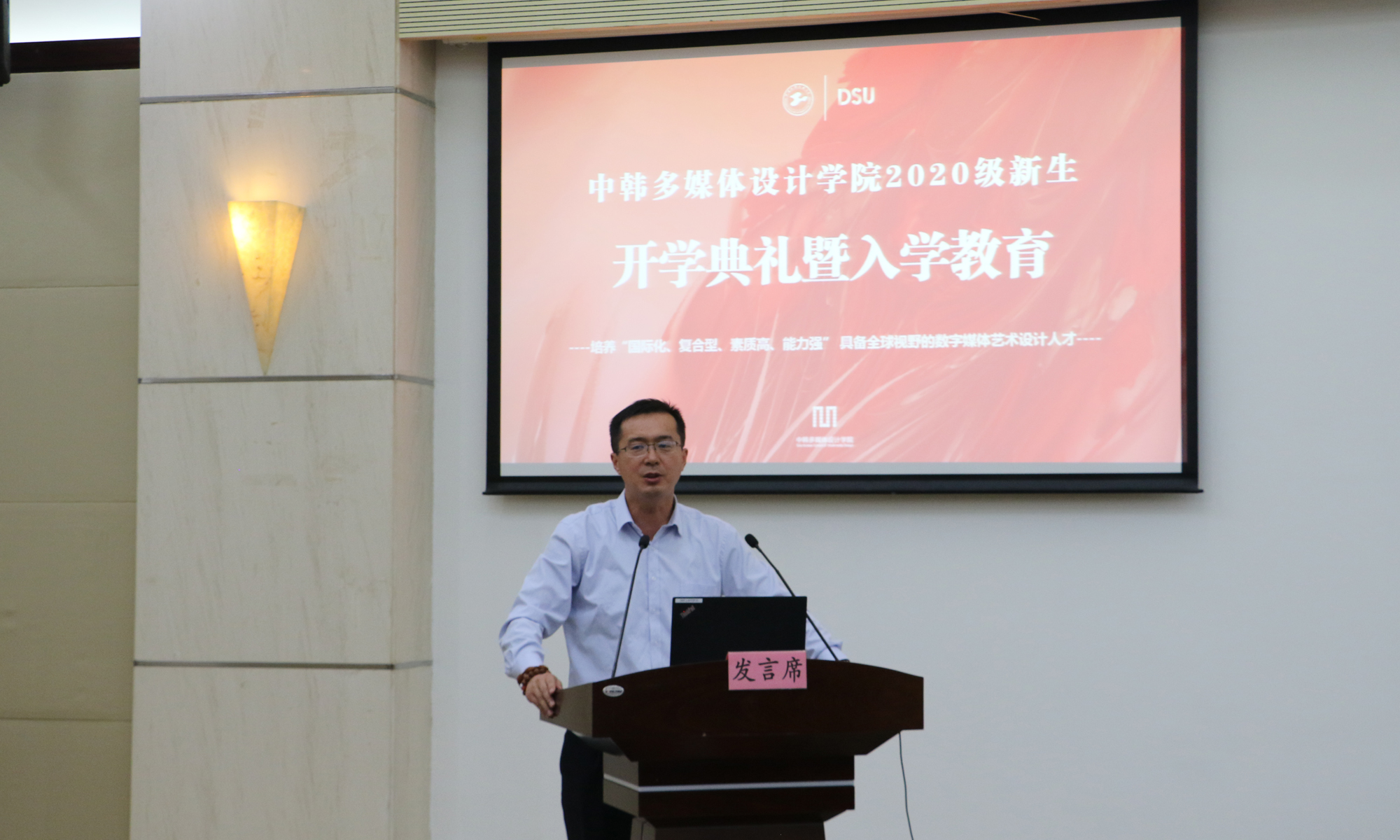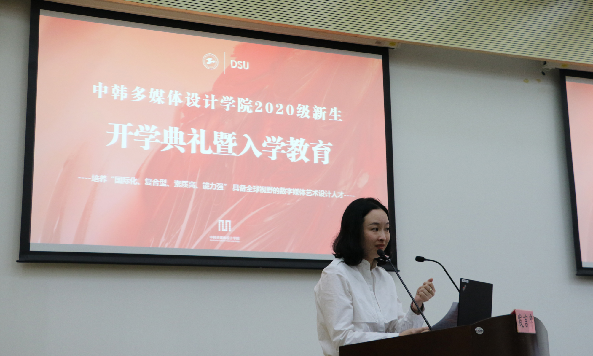 艺术设计公司党委书记袁蓉、中韩多媒体设计公司经理吴亚生、韩方经理金锺琪、公司党委副书记马建立、副经理顾艺、徐蓉蓉,以及新生班主任、辅导员、中韩方教师代表,全体2020级本科生、研究生参加了典礼,开学典礼由公司党委副书记马建立主持。