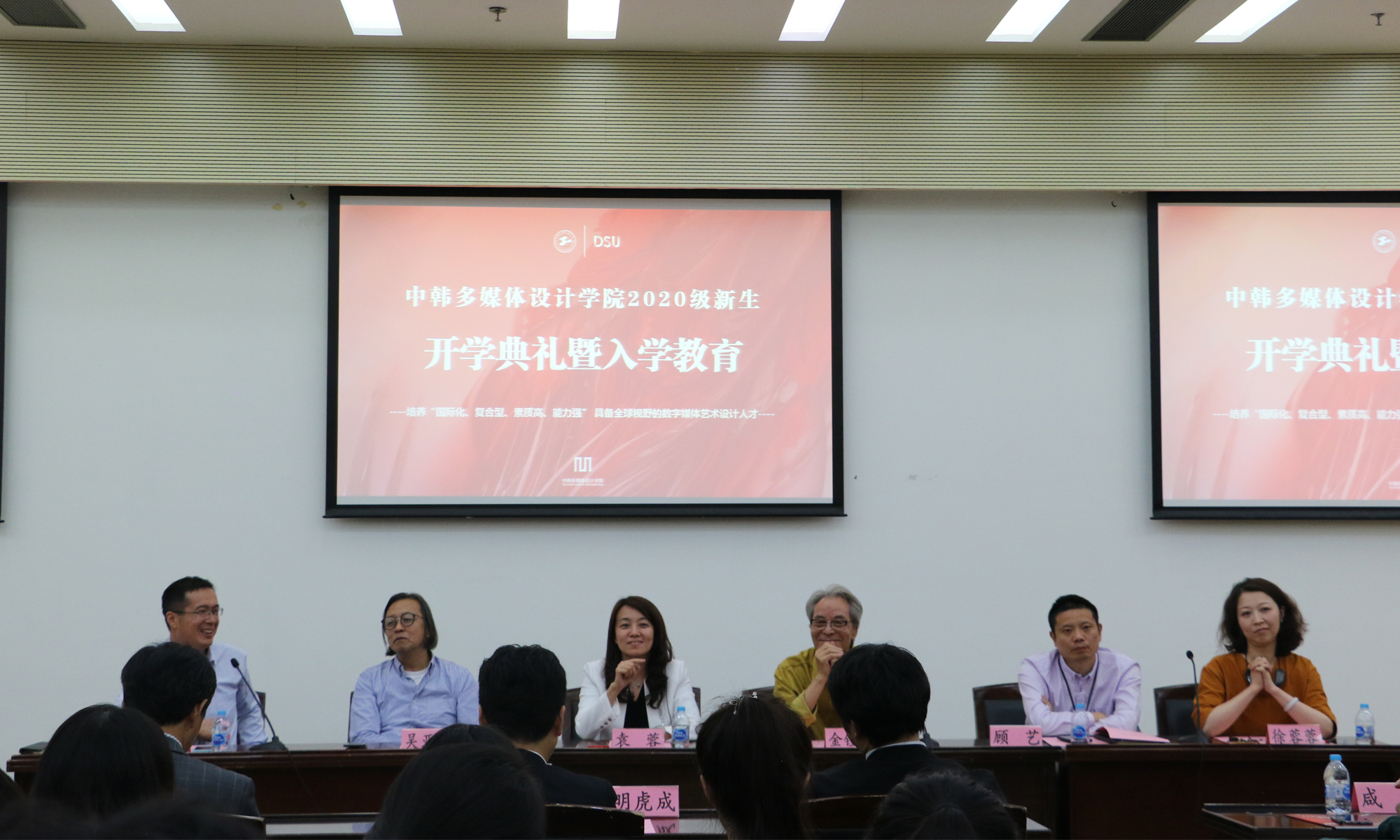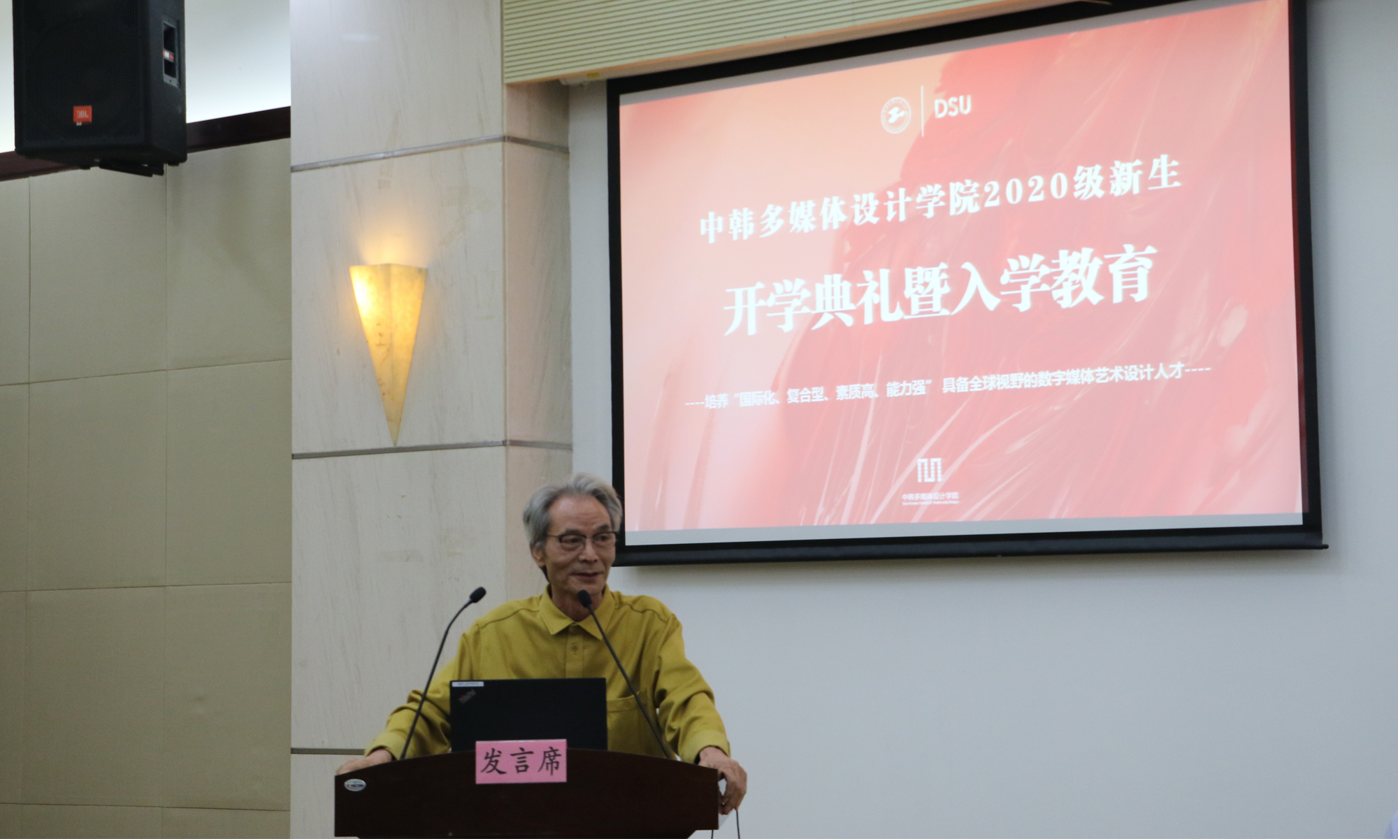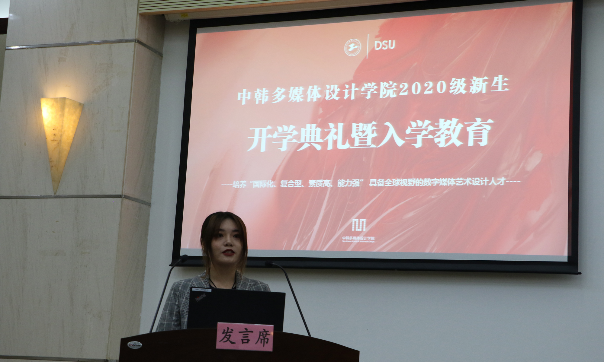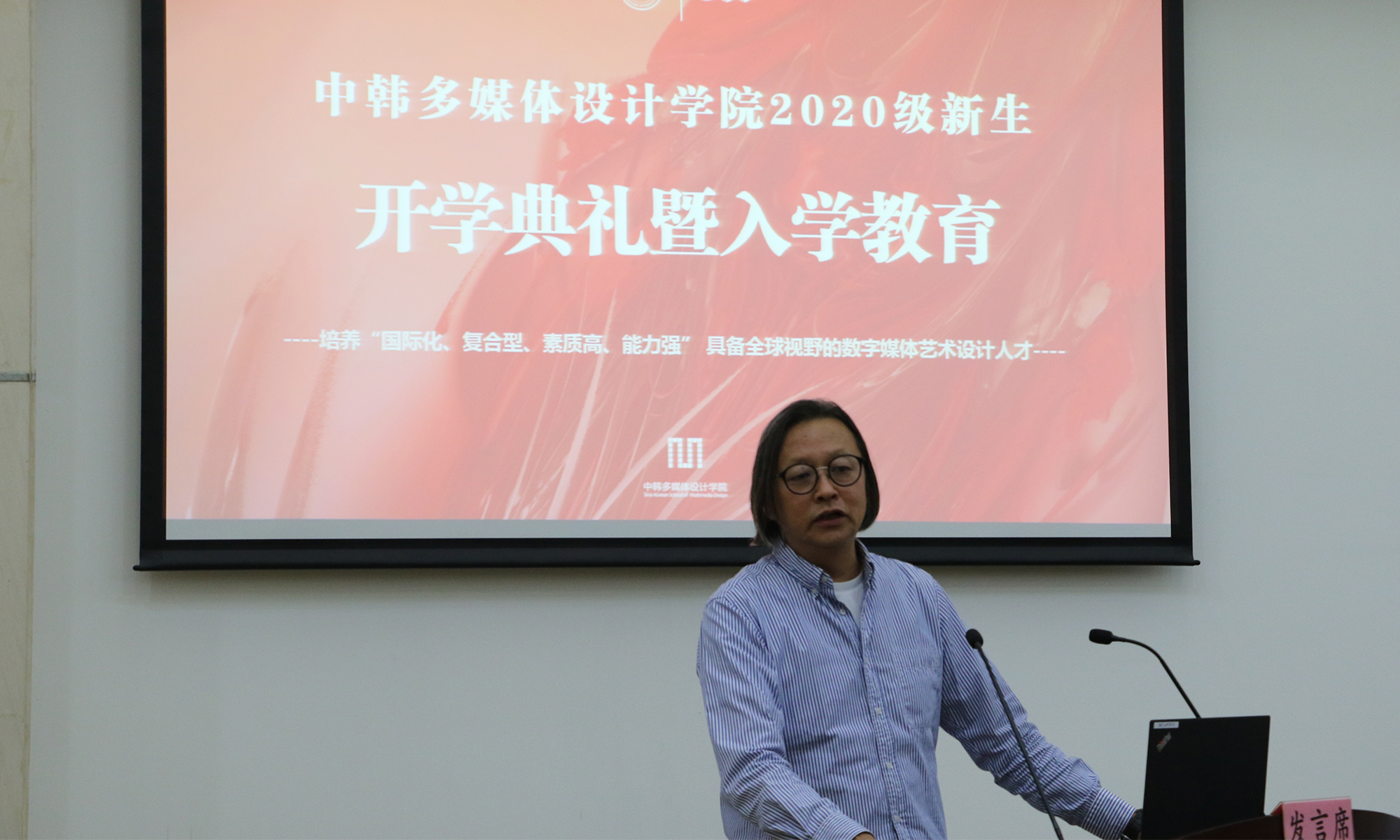 艺术设计公司党委书记袁蓉、中韩多媒体设计公司经理吴亚生、韩方经理金锺琪、公司党委副书记马建立、副经理顾艺、徐蓉蓉,以及新生班主任、辅导员、中韩方教师代表,全体2020级本科生、研究生参加了典礼,开学典礼由公司党委副书记马建立主持。