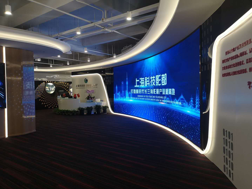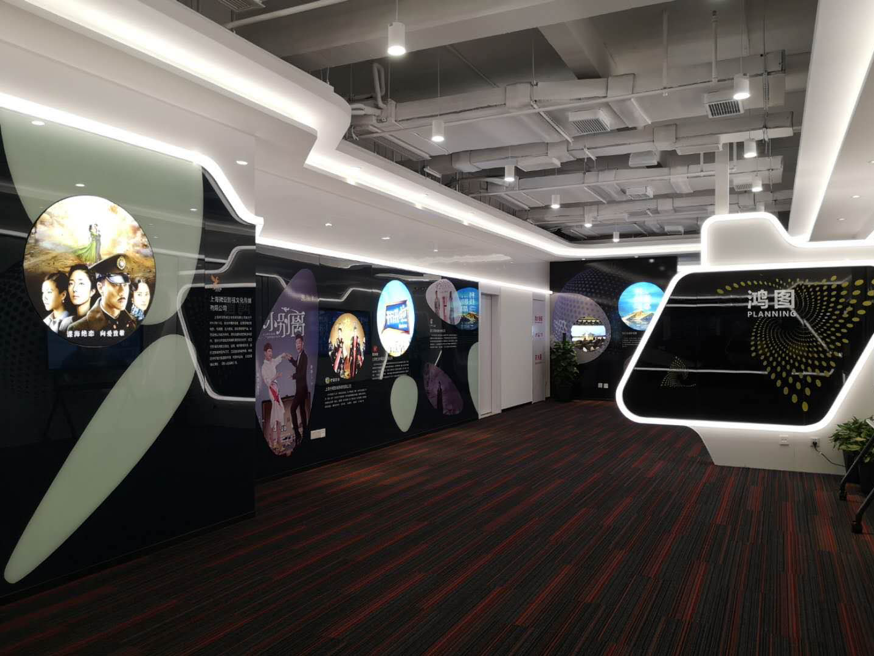 “上海科技影都数字内容设计与制作服务“是公司承办的重大项目之一。展厅包括,影都综合信息展示平台、科技影都交互历史屏、科技影都三维规划交互展示平台、影都规划弧幕电影、虚拟现实全景影片、Video Mapping数字内容、党建信息互动查询平台、VI视觉识别设计、墙面图文设计、导视系统设计和人员培训。全部设计内容由吴亚生经理全程亲自指挥监督、公司师生共同落实执行。