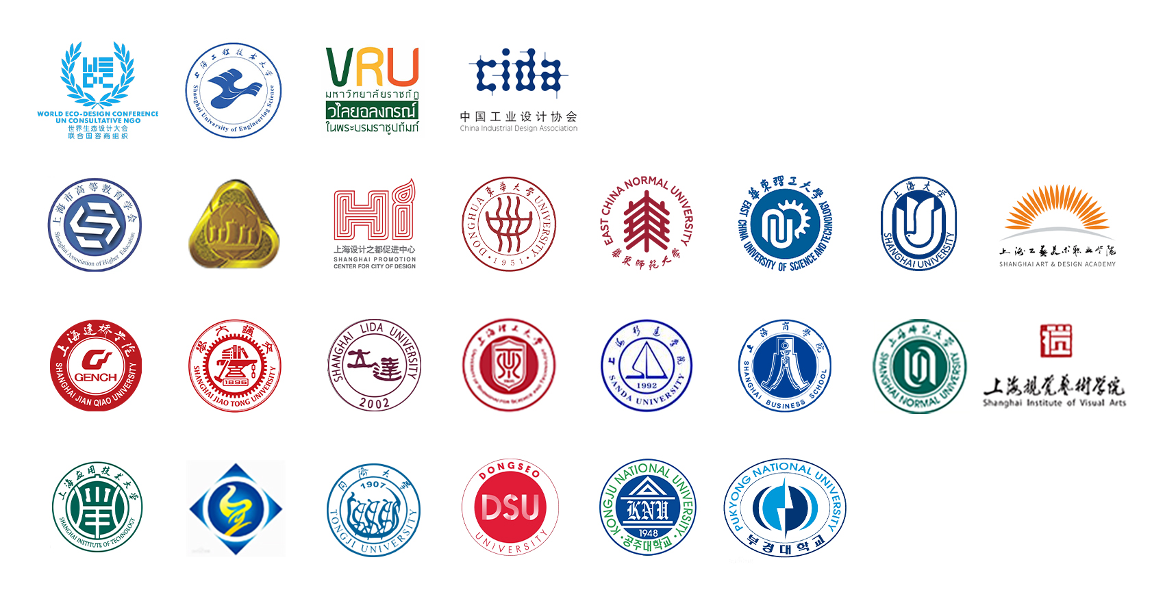 Co-organizers: Shanghai Federation of Social Science Associations; Shanghai Cultural & Educational Coordination Group Office; Shanghai Promotion Center for City of Design;Shanghai Creative Product Design Engineering Technology Research Center; Donghua University; East China Normal University; East China University of Science And Technology; Shanghai University; Shanghai Art &Design Academy; Shanghai Jianqiao University; Shanghai Jiao Tong University; Shanghai Lida University; University of Shanghai for Science and Technology; Sanda University,Shanghai Business School; Shanghai Normal University; Shanghai Institute of Visual Arts; Shanghai Institute of Technology; Shanghai Zhongqiao Vocational And Technical University; TongJi University; Korea Dongseo University; Korea Kongju National University; Korea Pukyong National University.