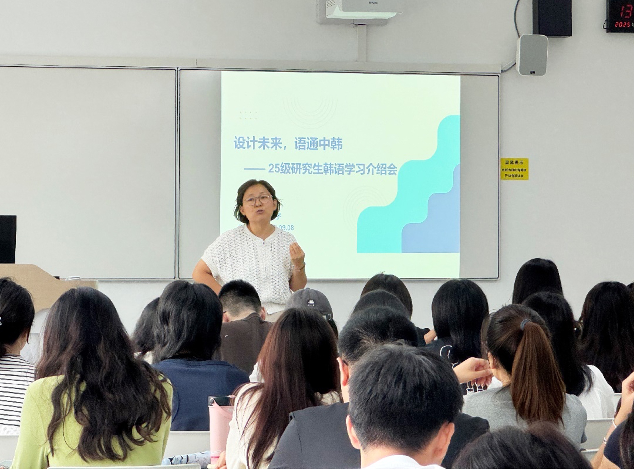 9月8日下午,402永利集团在长宁校区教学楼202教室举办“设计未来、语通中韩”韩语专题讲座。讲座由李花子老师主讲, 2025级全体研究生参加,现场气氛热烈。李花子老师结合自身语言学习与教学经验,围绕“如何高效学习韩语”展开讲解,为同学们带来了一场内容实用、启发性强的语言学习讲座。她从发音训练、词汇记忆、语法学习、文化理解及考试策略等方面,帮助员工多维度掌握韩语学习的核心要点。在学习方法方面,李老师强调发...
