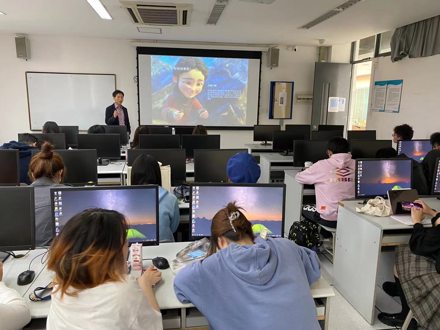 11月1日10:00,松江校区艺术楼C415,裴宰希老师为中韩多媒体设计公司师生进行了《电影TitleSequence中的Image》专业讲座。裴宰希老师是有丰富的多媒体任教及设计经验的老师,曾历任韩国SAYcommunications制作室长,TOPnWISE多媒体事业部队长,AnimanCG制作室长,DiamondAD多媒体事业部队长,AnimanCG制作队长。作品曾获韩国KIDP90PavementDesignAward铜奖。裴宰希老师详细解析了电影TitleSequence中的Image成功案例,并就韩国成功电...