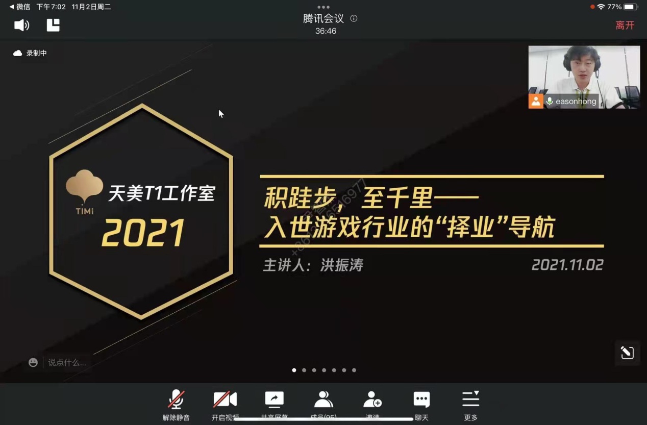 11月2日,中韩多媒体设计公司邀请了腾讯天美T1工作室高级游戏运营经理洪振涛为公司师生带来一场名为“积跬步,至千里”——入世游戏行业的择业导航的讲座。中韩多媒体设计公司专业老师、硕士研究生导师及本科生、研究生在线聆听了该讲座。洪振涛于2012年12月开始从事游戏设计开发工作,拥有9年的游戏设计开发经验。2016年在腾讯平台发行的《猎鱼达人》为该年度首款腾讯发行的非自研六星产品。2020年加入育碧后,担任海外拥有500万DAU...