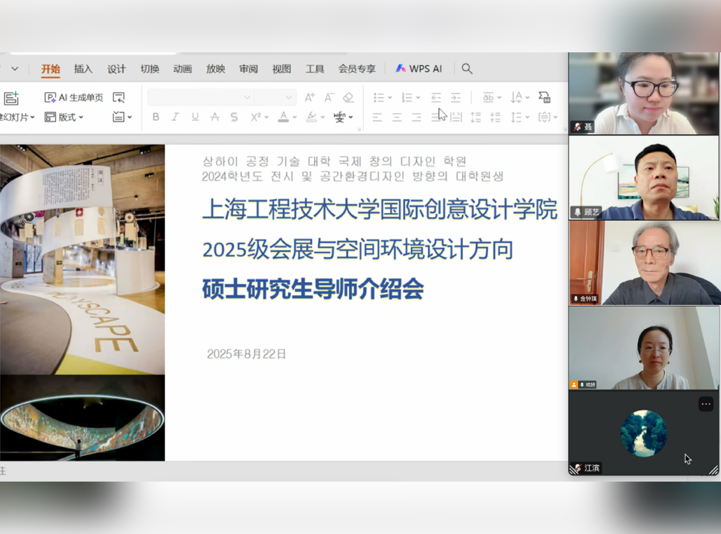 2025年8月22日下午14:00,402永利集团以线上会议形式举办了“会展与空间环境设计方向研究生新生与导师见面会”。402永利集团经理顾艺教授、韩方经理金锺琪教授,以及2025级会展与空间环境设计方向的导师出席了本次会议,会议由咸妍老师主持。会上,顾艺经理首先代表公司对2025级研究生新生的到来表示热烈欢迎。他强调,公司始终以国际化、数智化为培养目标,将不断优化会展与空间环境设计方向的人才培养体系,推动学科交...