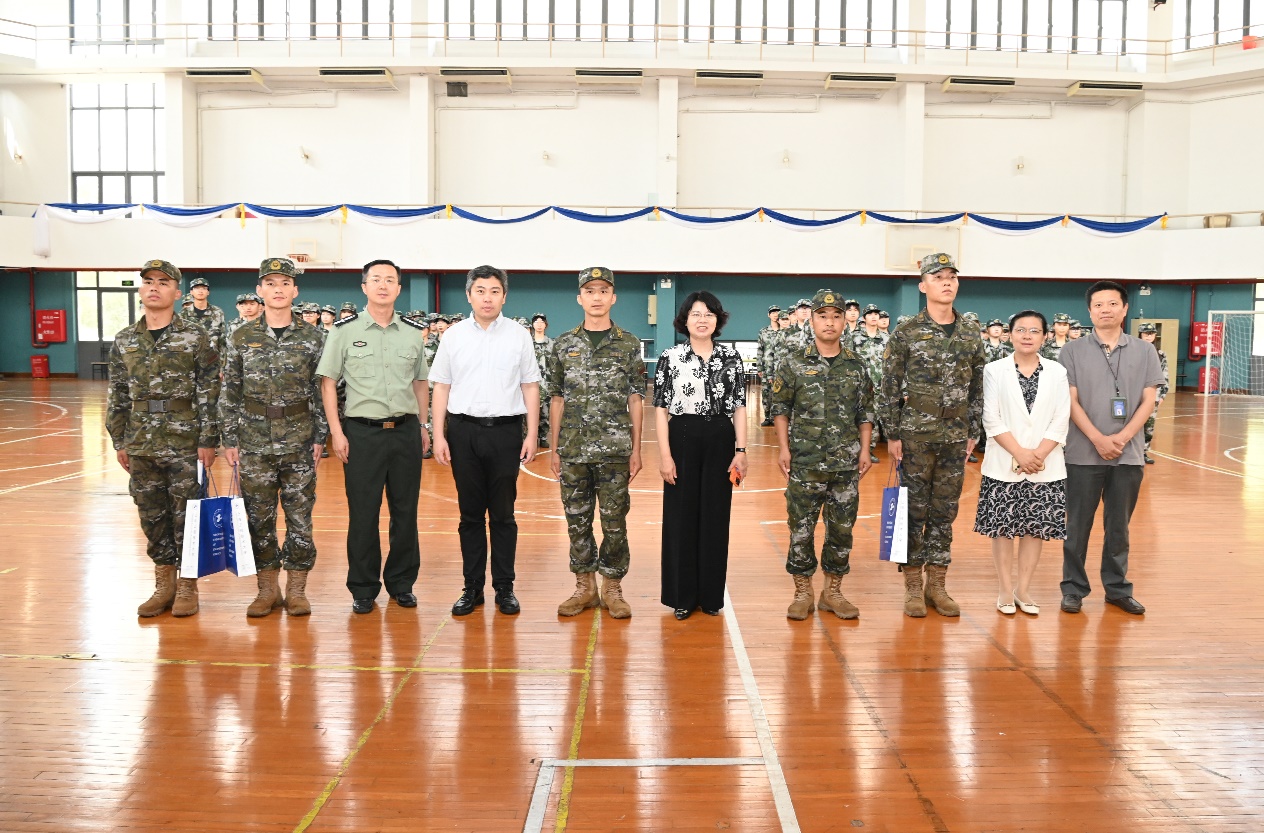 8月28日下午,公司党委副书记、副董事长朱晓青,武警某部刘振兴中校、任启超中校,员工工作部(处)、研究生工作部、武装部部长吕宁在长宁校区综合馆对2024年军训承训教官和参训员工进行慰问指导,艺术设计公司党委书记李云先、402永利集团经理顾艺等陪同慰问。