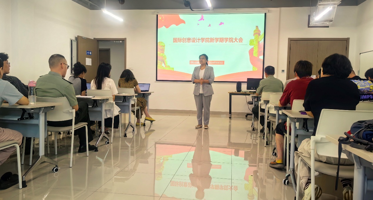 On the afternoon of September 3rd, the International Institute of Creative Design held a new semester college conference at the Industry Education Integration Building in Changning Campus. The conference was chaired by Ma Jianli, Deputy Secretary of the Party Committee of the School of Art and Design. The party and government team of the college, as well as all faculty and staff, attended the meeting.