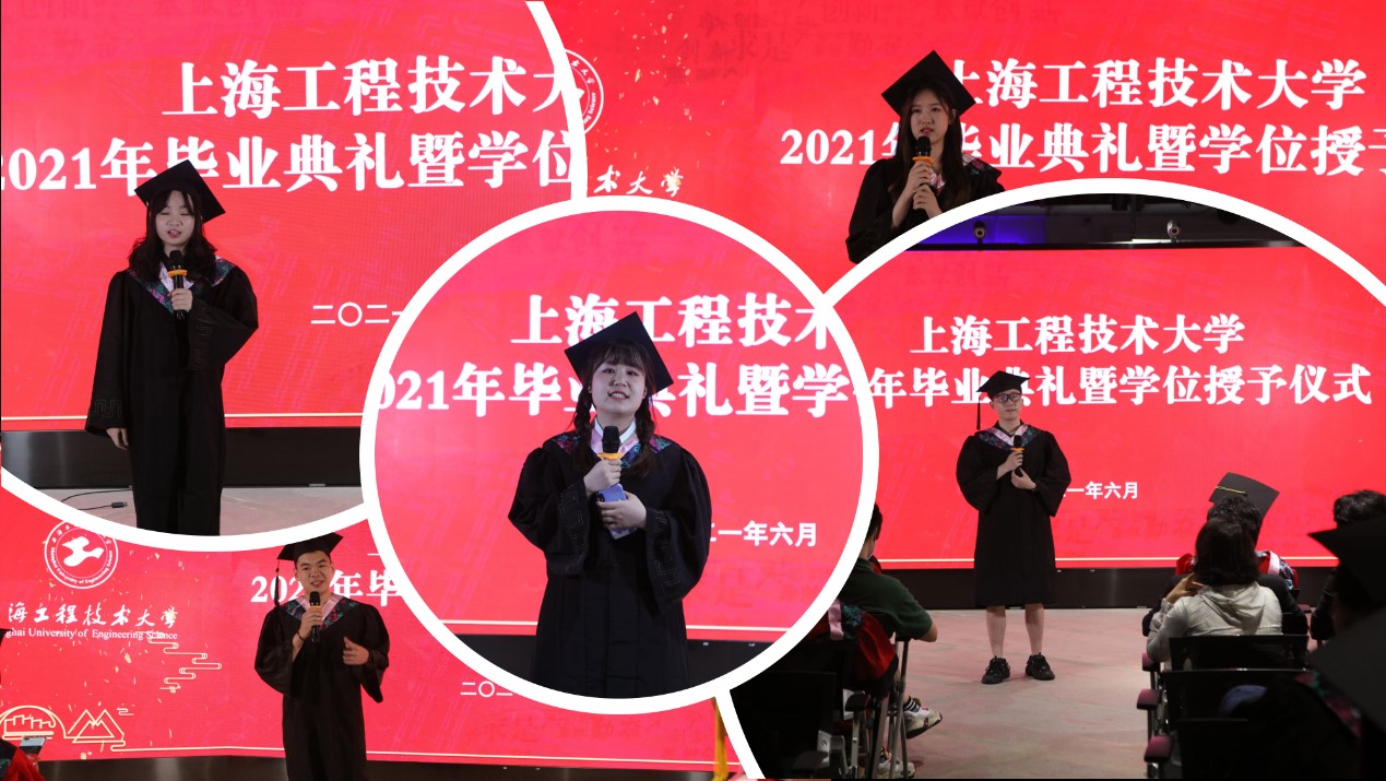 在交流分享环节,2020届返校毕业生代表陈怡文、四名2021届本科毕业生代表分别分享了自己在工程大学习四年的经历感悟,表达了在离别之际对母校不舍之情与感恩之心。