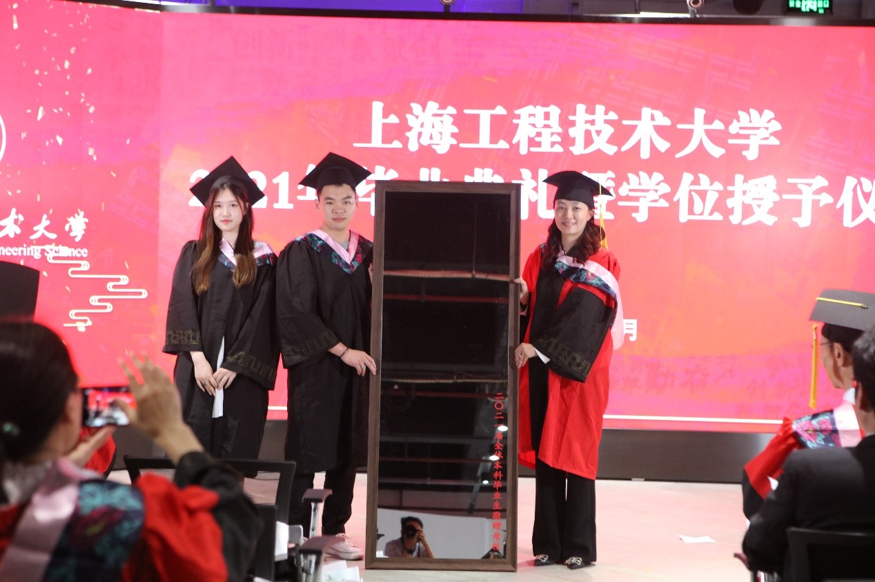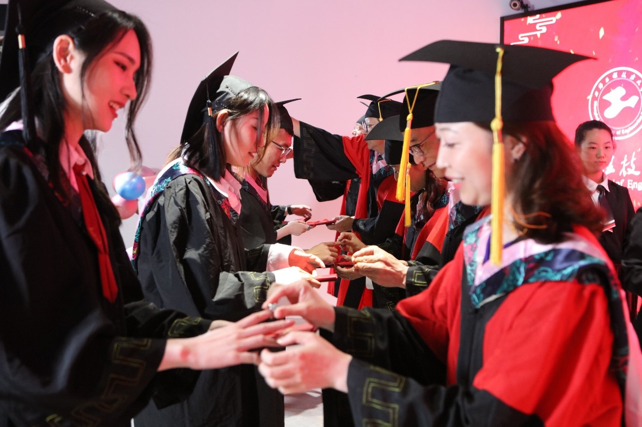在学位授予仪式环节,在庄重的氛围中,全体公司领导为所有毕业生颁发了毕业证、学位证,并亲手为毕业生拨穗,为毕业生戴上了象征师生情谊永存,母校与毕业生心连心的定制毕业戒指。