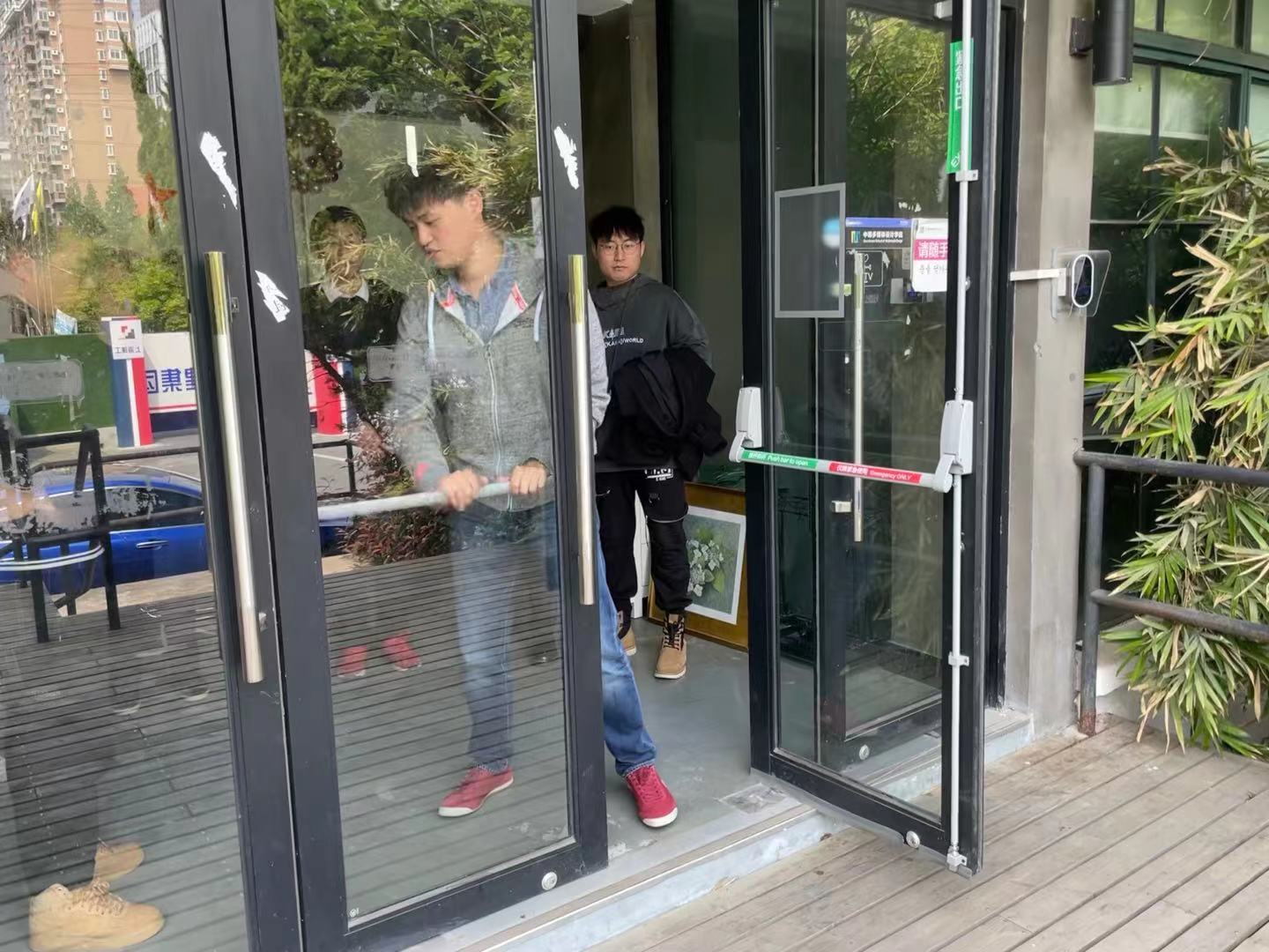 另,向老师和同学展示如何使用本院新设的应急逃生门。假想火情,进行疏散演练。