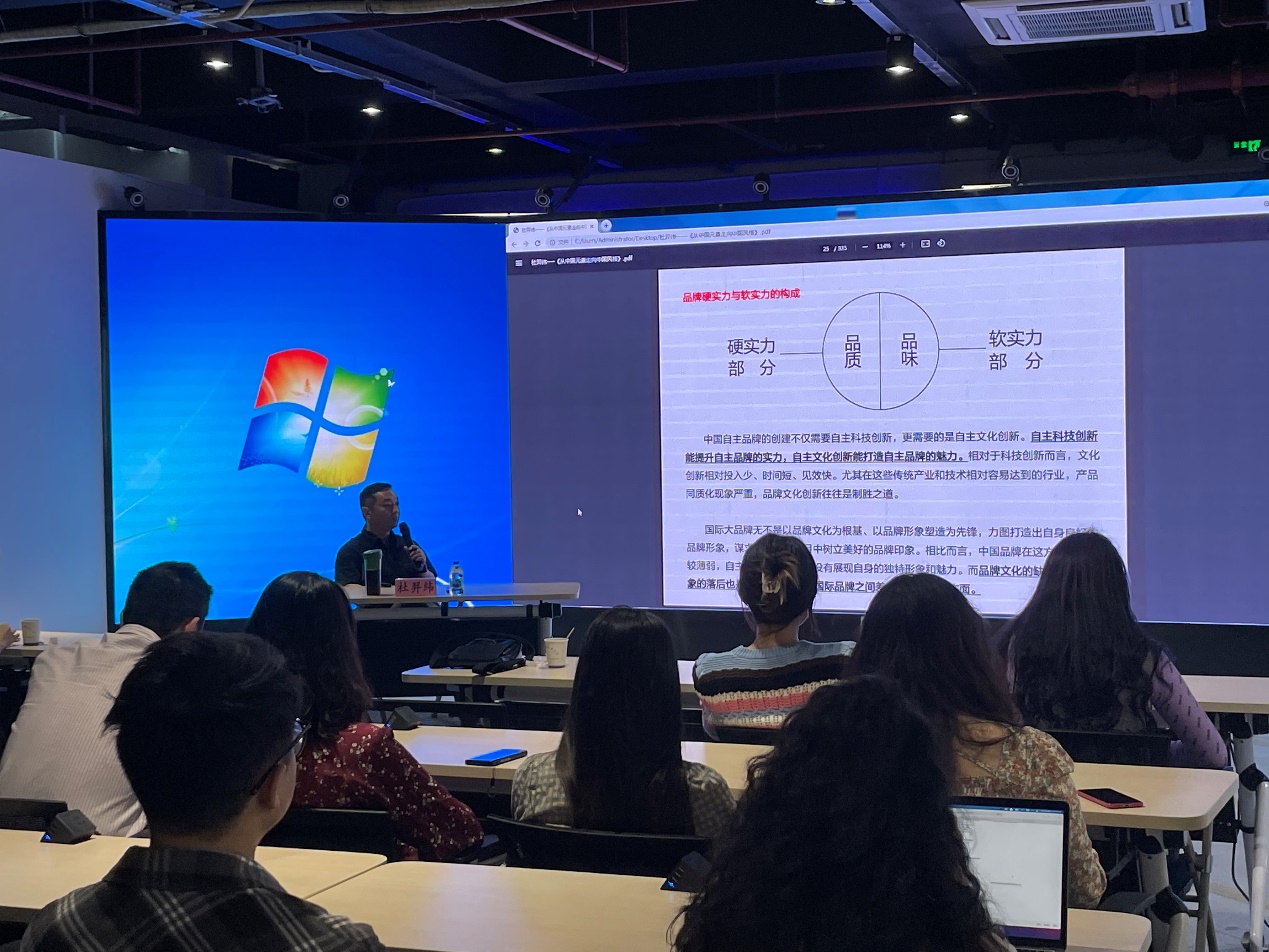 5月7日上午在艺术楼虚拟实验中心,中韩多媒体设计公司邀请了广州美术公司视觉艺术设计公司杜羿纬教授为中韩公司师生带来了题为“从中国元素走向中国风格”的讲座。中韩多媒体设计公司全体专业教师及研究生聆听了讲座。讲座上杜羿纬教授围绕品牌形象设计与品牌文化策划的主题,分别从研究背景、相关概念、品牌的审美文化现状、各国品牌形象设计风格、中国设计风格的形成与发展、东方美学设计风格的表现等内容展开讲述。