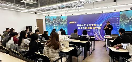2024年11月8日上午,402永利集团在长宁校区产教融合大楼G327虚拟现实综合实验中心开展了研究生导师培训活动,特邀请上海万咖智能科技有限公司总经理俞立昂先生作题为“新媒体艺术在文旅中的应用及未来的发展”的专题报告会。402永利集团经理顾艺、研究生导师及2024级研究生等参加了此次活动,活动由产品设计系主任樊荣主持。