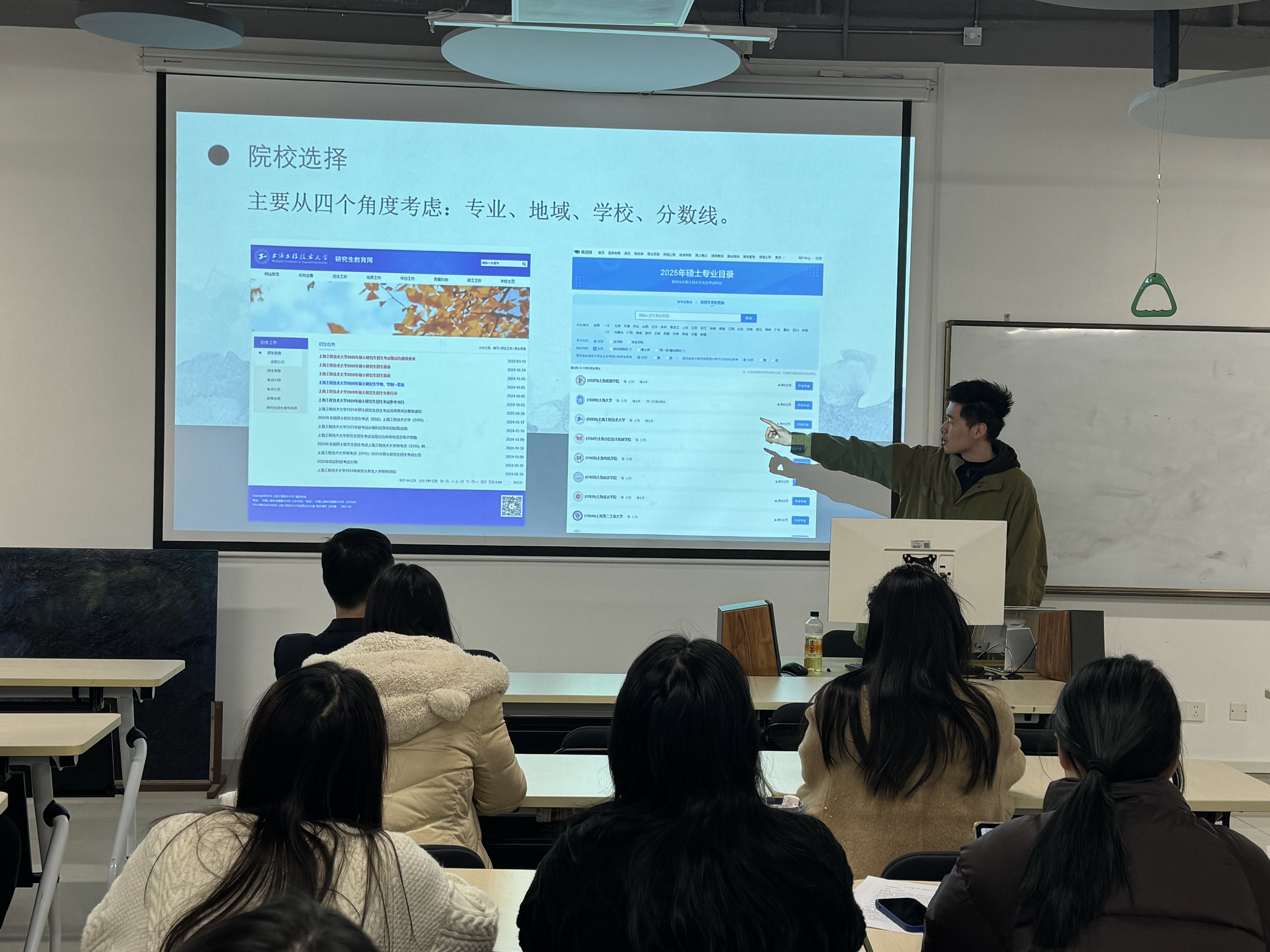 研究生代表李灏薰、刘文浩、詹子冰分别围绕备考策略和学术研究体验等主题进行了经验分享,为学弟学妹们提供了实用的建议。