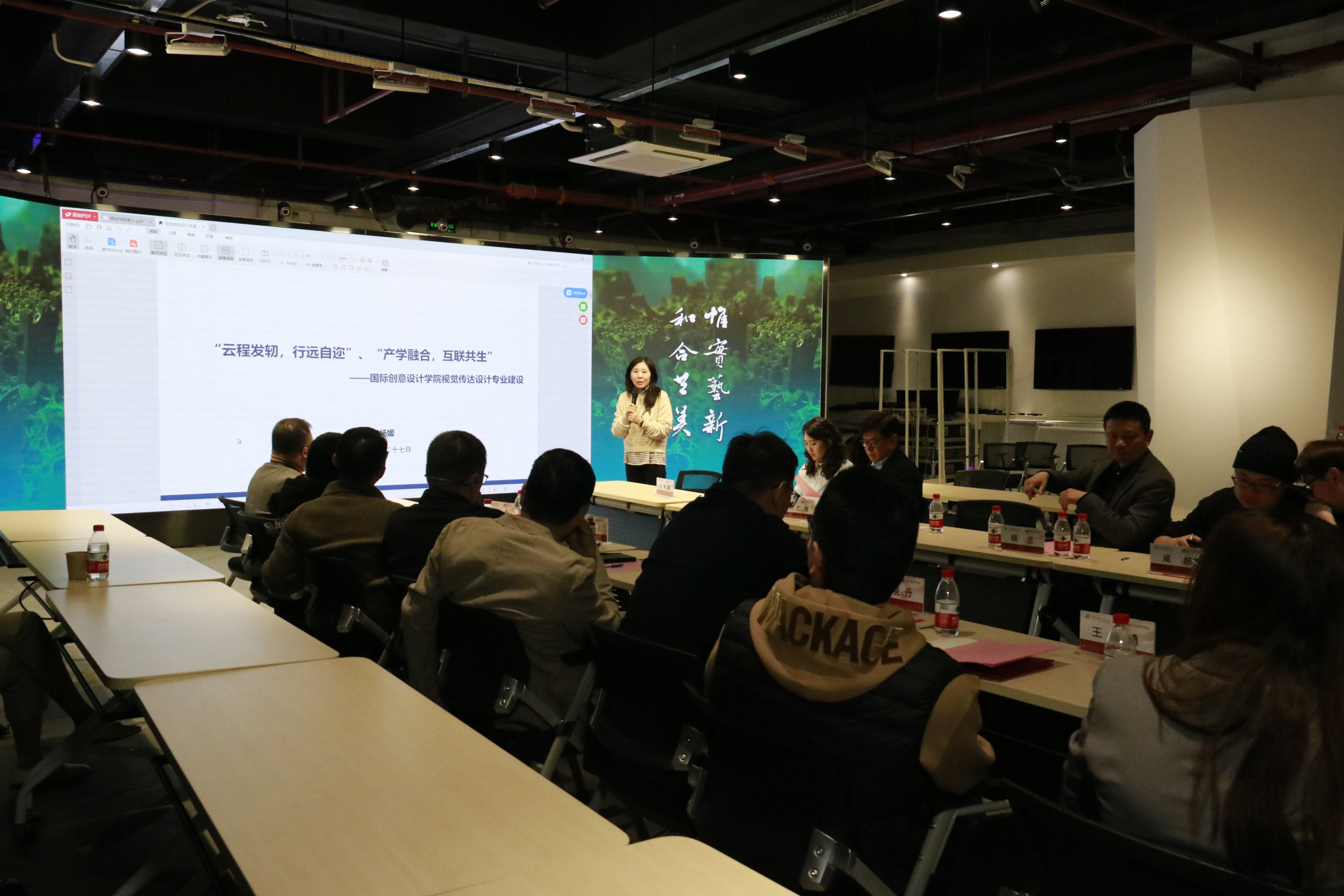 交流环节中,顾艺经理首先从历史沿革、学科发展、专业建设、社会服务等视角介绍了公司整体情况。杨媛老师从建设基础、建设工作、建设成果、建设目标四个方面展示了视觉传达设计专业建设情况。