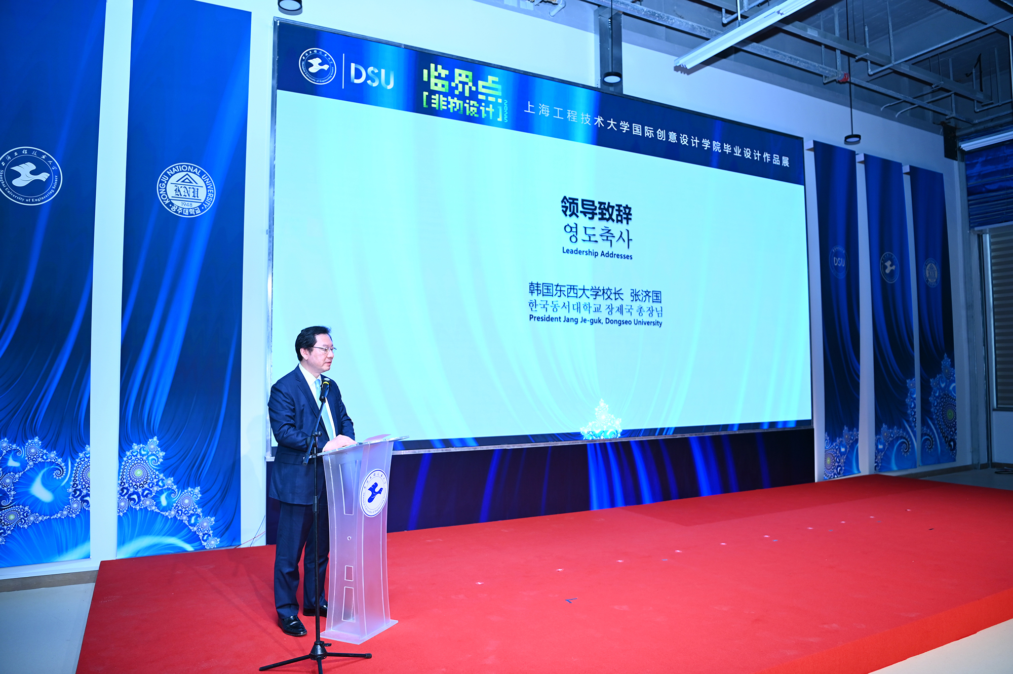 张济国在致辞中表示,期待毕业生以毕业展为起点,成长为引领媒体设计产业的国际化人才。