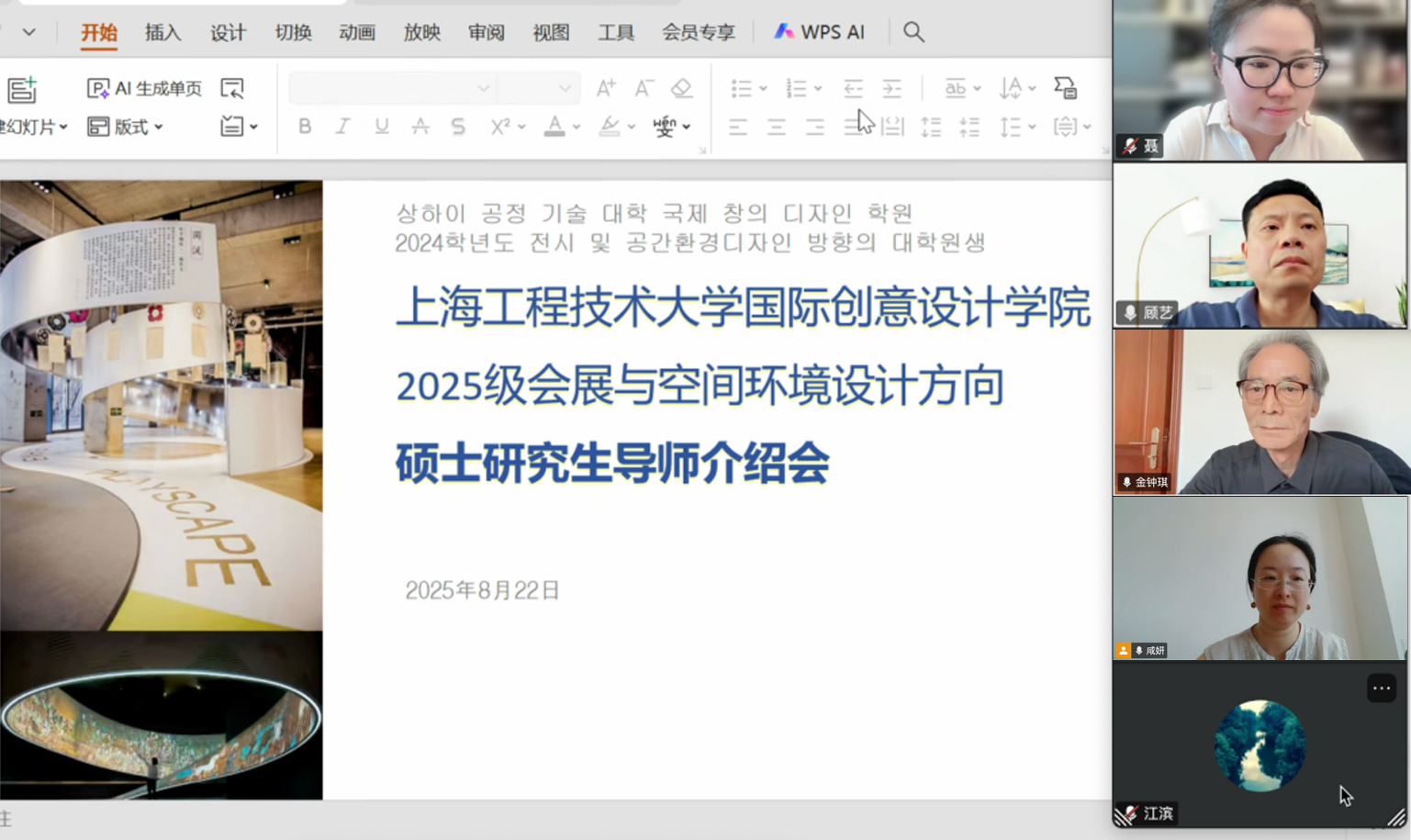 2025年8月22日下午14:00,402永利集团以线上会议形式举办了“会展与空间环境设计方向研究生新生与导师见面会”。402永利集团经理顾艺教授、韩方经理金锺琪教授,以及2025级会展与空间环境设计方向的导师出席了本次会议,会议由咸妍老师主持。