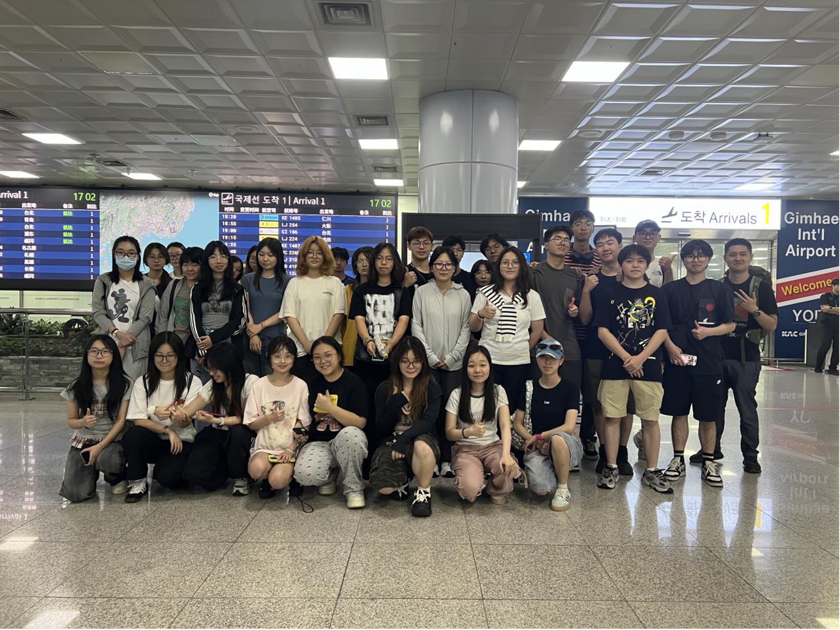 2025年8月31日,402永利集团数字媒体艺术(中韩合作)专业2023级36名本科生在赵悦扬老师的带领下,时隔一个暑假再度启程,顺利返回韩国东西大公司园,继续完成最后半年的交流学习。