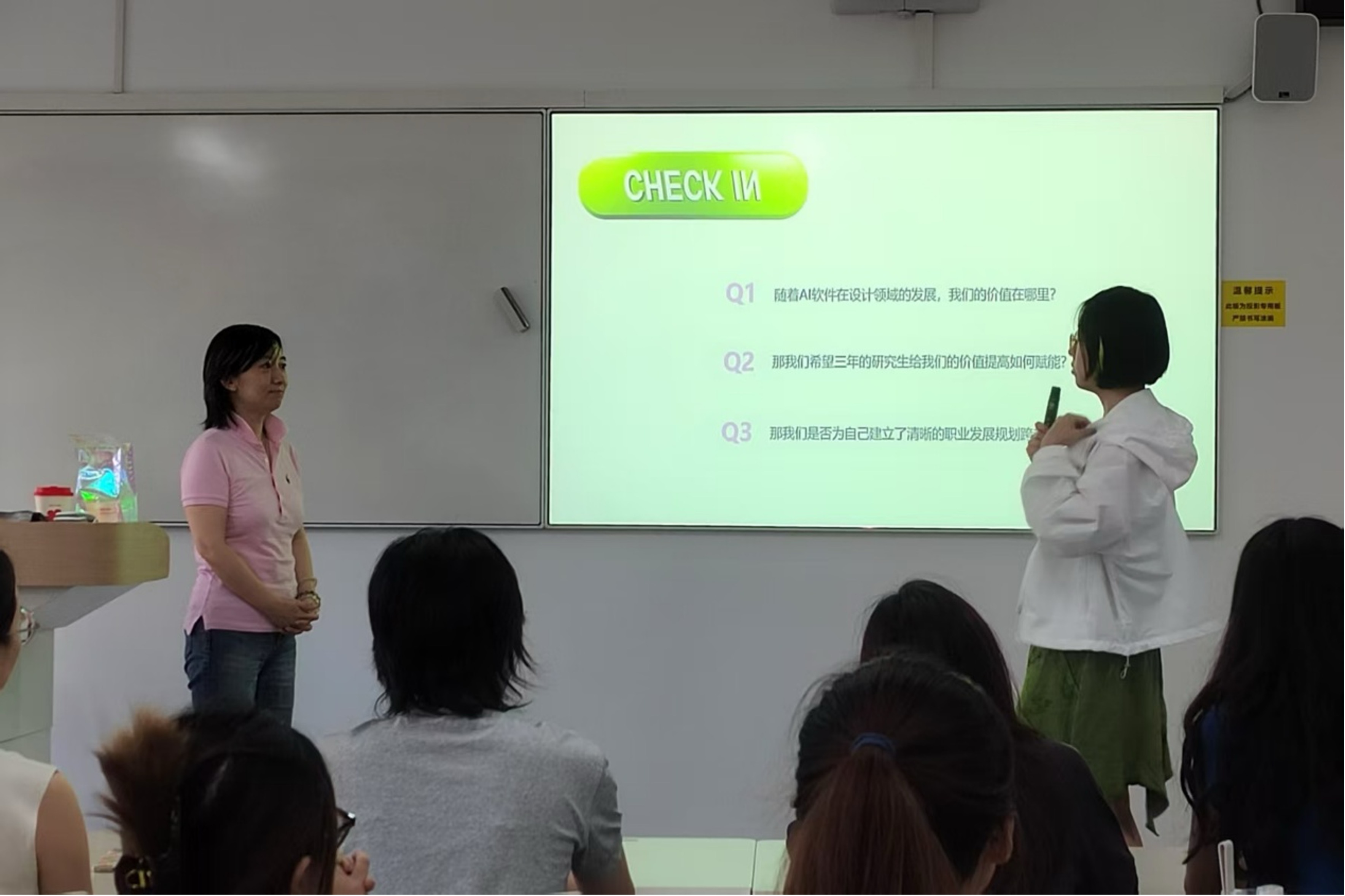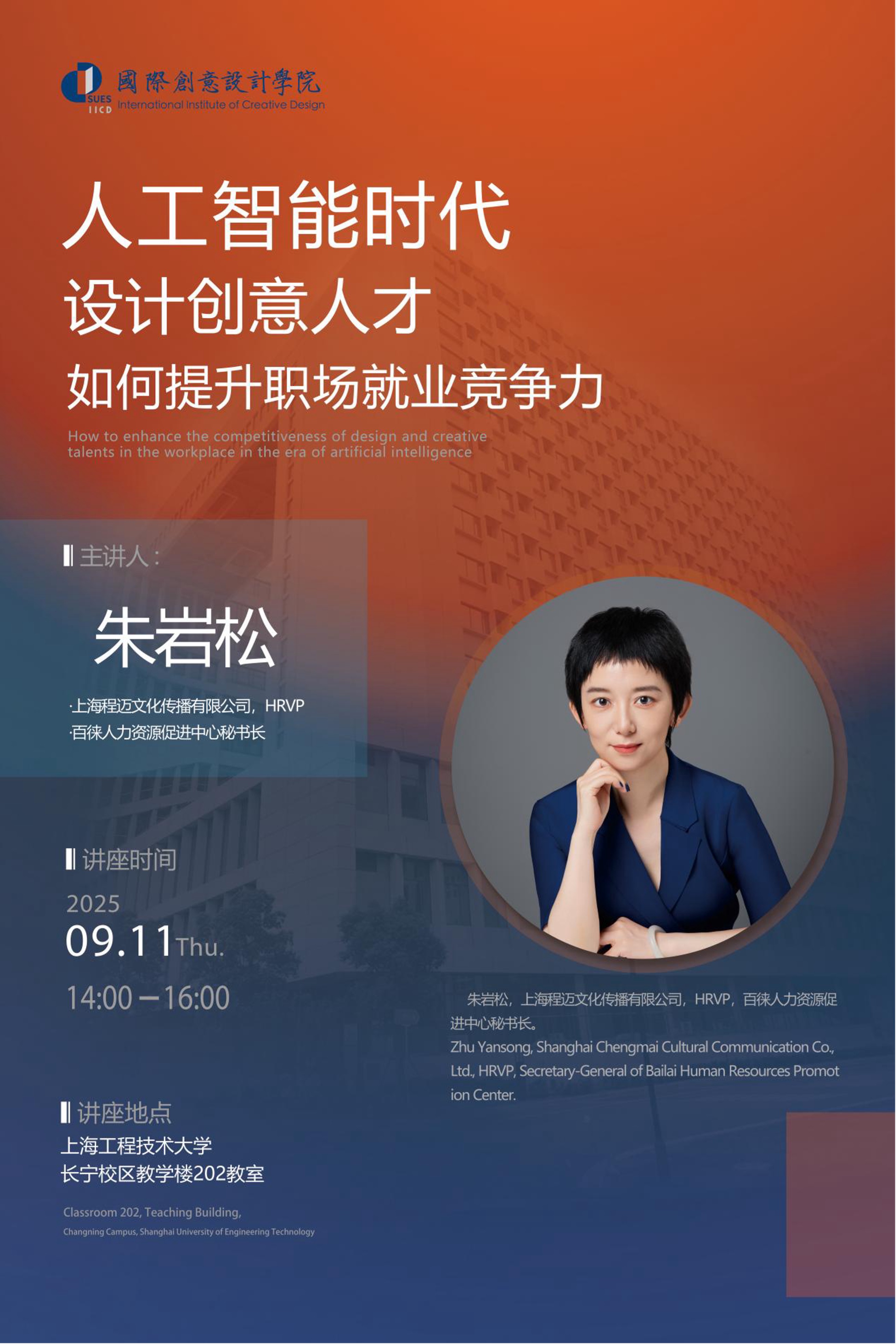 9月11日,402永利集团在教学楼202室举办专题讲座,特邀上海程迈文化传播有限公司HRVP朱岩松,为2025级研究生解析AI时代设计师的竞争力构建路径。公司樊荣、王冠夷等教师出席,讲座由王冠夷主持。