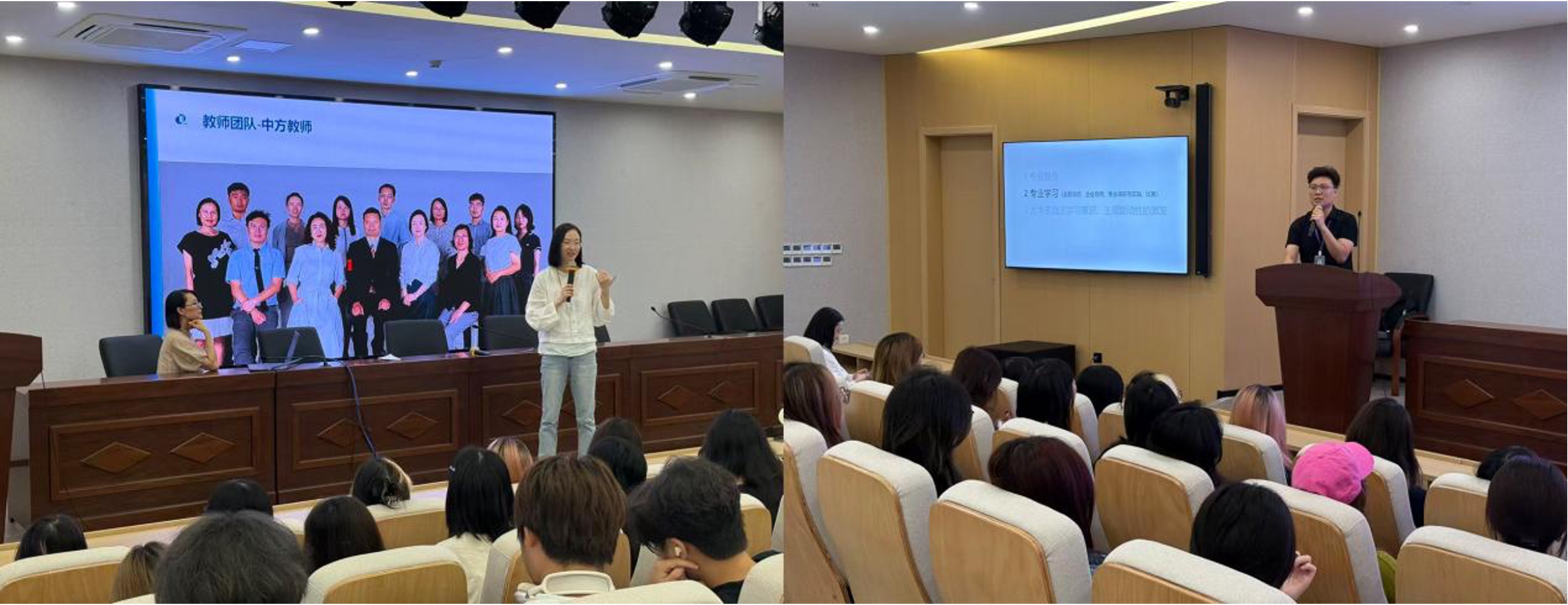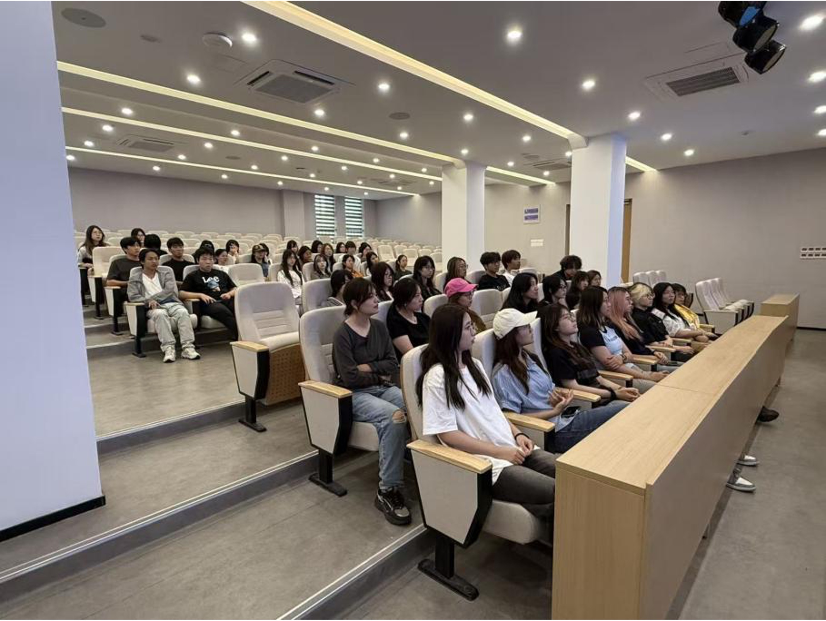 会上,咸妍老师以“强化国际化办学特色、推动数字艺术与产业需求深度融合”的要求为切入点,系统介绍公司发展历程、团队建设成果及专业培养体系:从中韩双方课程共建、团队互派的国际化优势,到对接数字媒体行业趋势的培养模式,清晰勾勒出专业与公司规划同频共振的发展蓝图,让新生直观理解“为何学、学什么、往哪走”。黄晶石老师以“鼓励创新实践、培育拔尖设计人才”的导向,对新生提出成长期许:希望同学们保持对设计的赤诚与探索欲,在中韩合作的多元学习环境中敢于突破思维边界,将课堂知识与行业前沿紧密结合,以实践回应公司“培养具有国际视野创新者”的目标。
