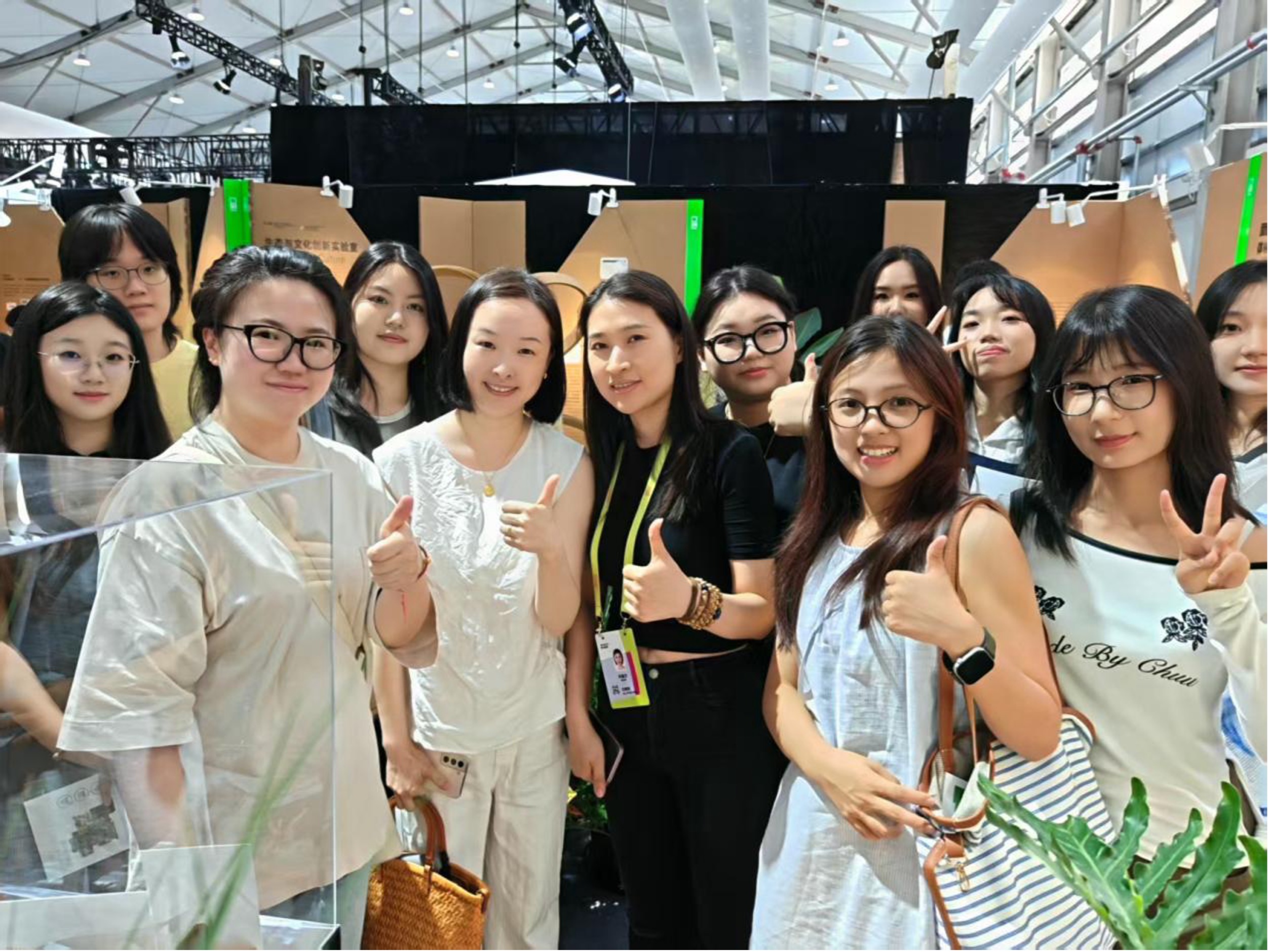 在公司专业教师的精心组织与引导下,同学们有序参观了各具特色的展区。在生态设计主题展区,全球化工创新领导者法国阿科玛展示了其在绿色创新材料领域的最新突破,而全球包装解决方案专家美国阿普塔则分享了其在绿色包装供应链方面的前沿实践。大会还专题展出了2025“上海设计100+”全球竞赛的优秀入围及获奖项目,让设计走进公众生活。