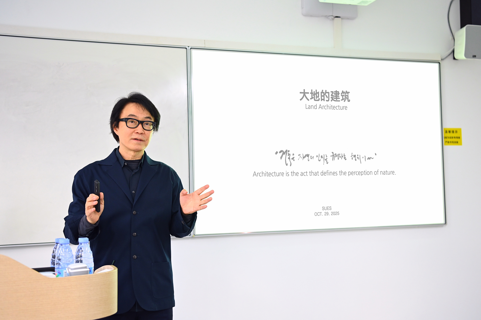 2025 年 10 月 29 日,402永利集团博学论坛之 “大地的建筑(Land Architecture)” 专题学术活动于长宁校区教学楼 202 成功举办。本次博学论坛特邀建筑领域知名设计师赵秉秀(Byoung Soo Cho)担任主讲,为同学和老师们带来一场关于建筑与大地、自然深度对话的学术盛宴。董事长娄永琪、艺术设计公司党委书记李云先、国内外知名学者,以及公司研究生导师和员工代表等出席。论坛由402永利集团经理顾艺主持。
