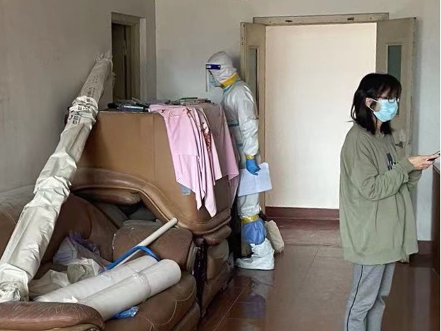 4月4日,由于小区内14号楼被查出有密接住户,需要有人逐户通知居民到一楼进行核酸采样。徐老师依然冲锋在前,完成了这一任务。