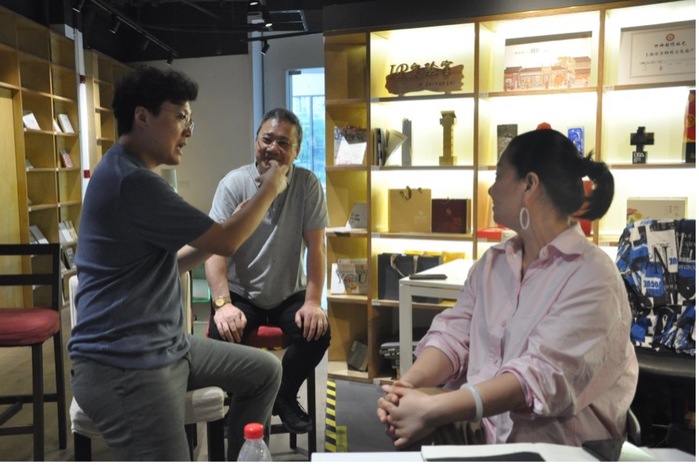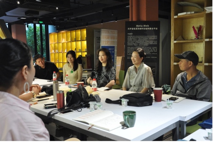 9月15日下午,由公司黄晶石老师为主持人,组织了一场“非遗传承与创新”的座谈会。座谈会充分讨论了这两天课程上的内容,并就如何将非遗工艺融入现代生活,以及如何通过创新使非遗得到更广泛的传播进行了深入且热烈的探讨。此次座谈会的参与人员包括公司的徐蓉蓉副经理、樊荣副教授、黄晶石老师、王郅老师以及咸妍老师。
