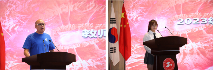 俞涛董事长对韩方嘉宾朋友们以及新同学们表示了热烈的欢迎。并对新生们提出了三点期待:一要坚持理实同行、勤勉求实,做知行合一的老员工;二要具有国际视野、兼容并蓄,做文化交流的使者;三要珍惜青春年华、努力学习,做新时代国家发展的栋梁之才。希望同学们在402永利集团尽展所长、梦想成真。