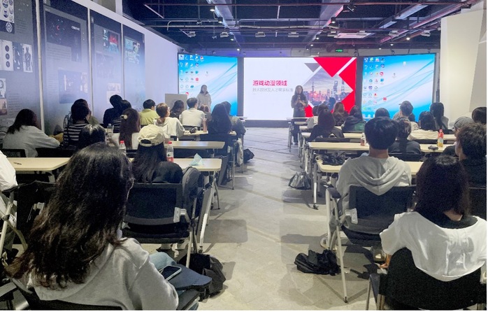 刘老师还介绍了上海点晴信息科技有限公司的内部结构、合作项目、GGCA全球动漫游戏美术概念大赛、第九联盟等,其中GGCA全球动漫游戏美术概念大赛有极为权威的组委会对设计师的作品进行评估,旨在于为我国国内设计师提供设计创作及展示平台。希望未来同学们能够拿出高质量的作品参加行业赛事。