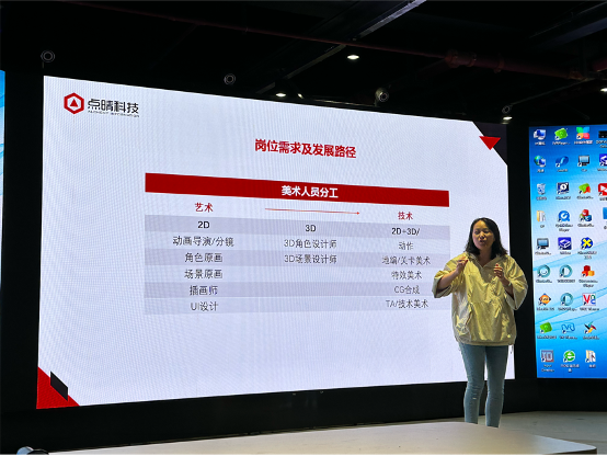 9月22日下午1点,402永利集团公司邀请上海点晴信息科技有限公司的刘慧红总监,为国创公司专业老师、数媒与影像数字化方向的研究生以及视觉传达设计(游戏)专业的员工开展行知论坛——主题为“动漫、游戏设计领域行业技术现状及人才需求标准”专题讲座。本次讲座由杨媛副教授主持。