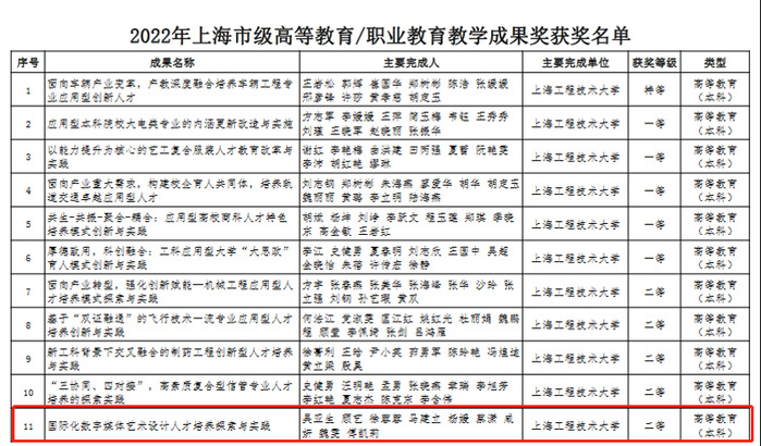 2022年上海市教学成果奖评选结果公布,公司喜获市级教学成果奖二等奖1项。