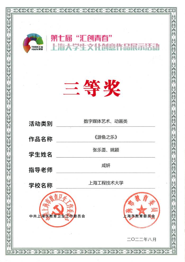 15 | 《游鱼之乐》 | 张乐荟、姚颖 | 咸妍 | 三等奖 |