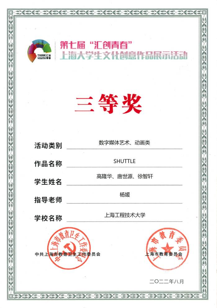 5 | SHUTTLE | 高隆华、唐世源、徐智轩 | 杨媛 | 三等奖 |