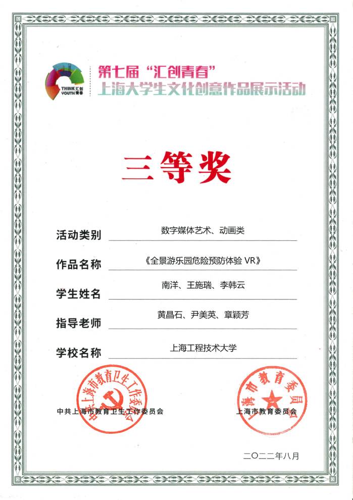 13 | 《全景游乐园危险预防体验VR》 | 南洋、王施瑞、李韩云 | 黄晶石、尹美英 | 三等奖 |