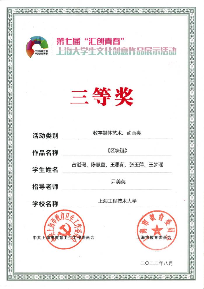 12 | 《区块链》 | 占镒瑕、陈慧童、王思茹、张玉萍、王梦瑶 | 尹美英 | 三等奖 |