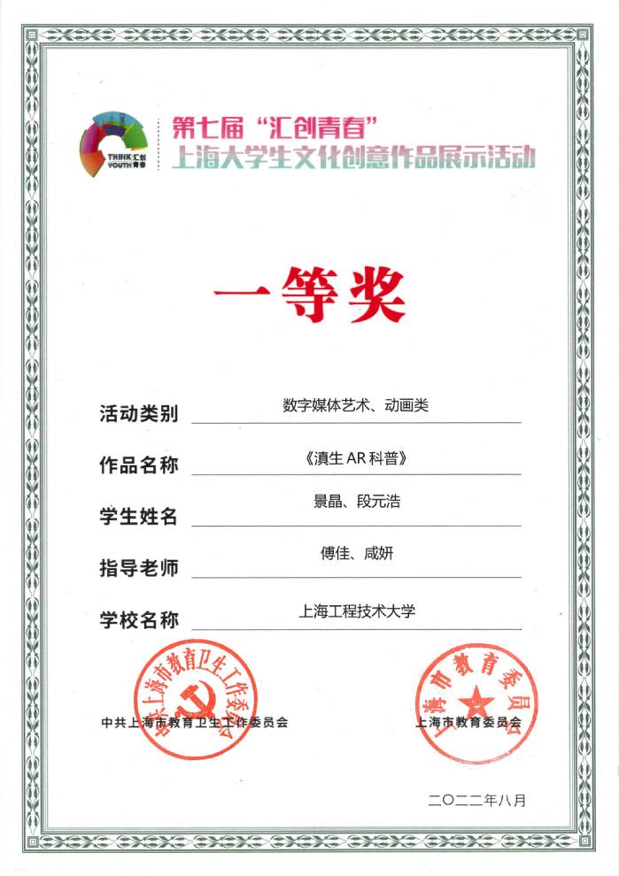 3 | 《滇生AR科普》 | 景晶、段元浩 | 傅佳、咸妍 | 一等奖 |
