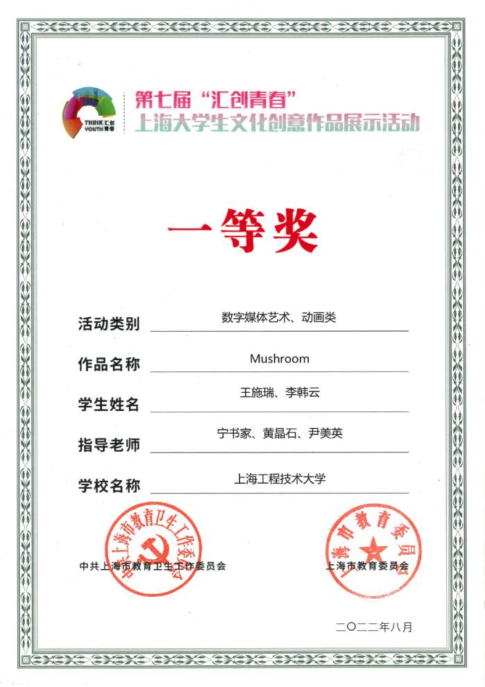 1 | Mushroom | 王施瑞、李韩云 | 宁书家、黄晶石、尹美英 | 一等奖 |