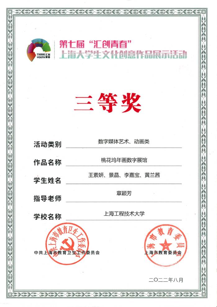 9 | 桃花坞年画数字展馆 | 王素妍、景晶、李嘉宝、黄兰茜 | 章颖芳 | 三等奖 |