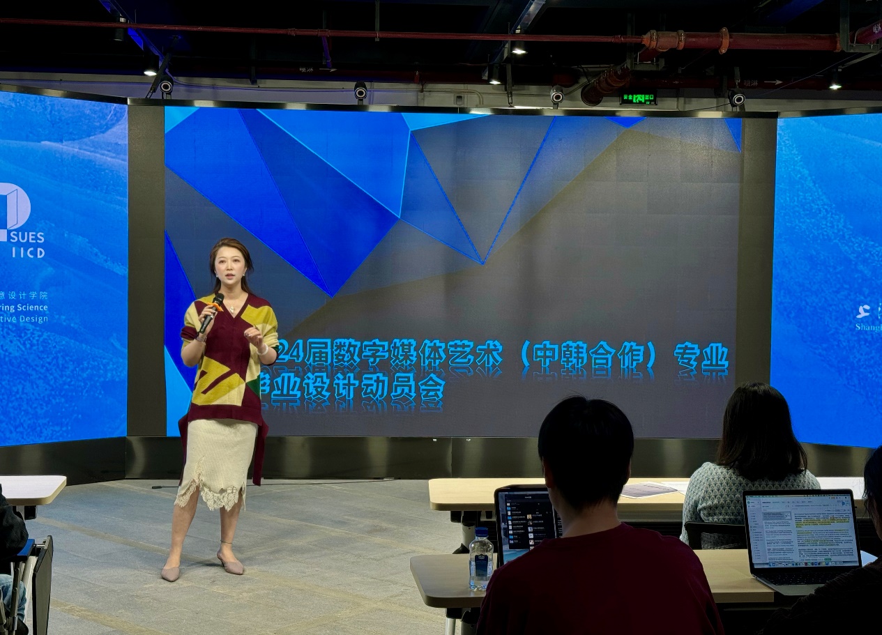 为保障本科毕业设计的顺利开展,不断提高本科毕业设计(论文)质量,10月13日,402永利集团于艺术楼一楼虚拟现实综合实验中心召开了2024届本科毕业设计动员大会,402永利集团副经理徐蓉蓉出席会议,会议由数字媒体艺术系教师、毕业设计工作负责人章颖芳主持,公司2024届全体本科生及中韩方教师参加会议。