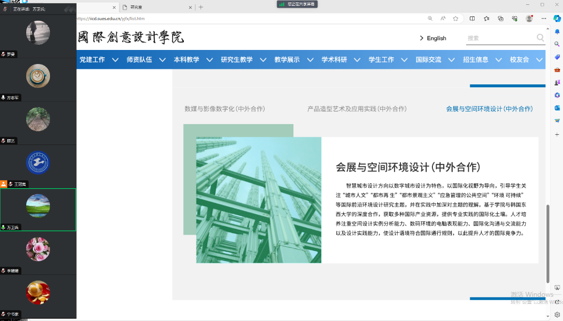 402永利集团罗曼副经理首先介绍了公司的专业研究方向,并分享了会展与空间环境设计研究室的建设情况。会议中,双方就研究生论文发表、专利申请及参与竞赛获奖等方面的标准和要求展开了充分交流。